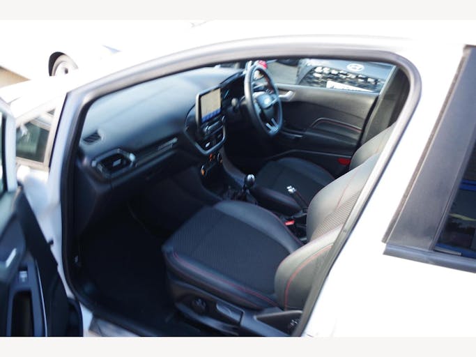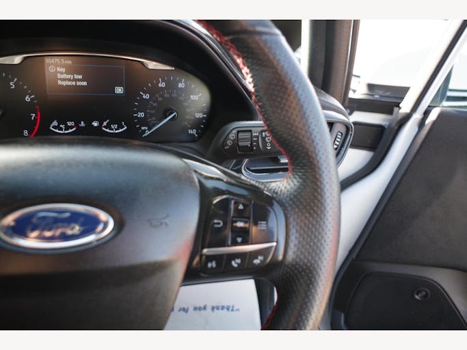 18in Alloy Wheels - ST-Line 5-Spoke - Rock Metallic - Machined Finish, 4.2in TFT Instrument Cluster Screen, Air Conditioning - Electronic Automatic Temperature Control - EATC, Airbags - Driver and Front Passenger, Airbags - Front Side Impact, Airbags - Front and Rear Side Curtain, Anti-Lock Braking System - ABS with Electronic Brake Force Distribution - EBD, Automatic Rain Sensing Wipers and Auto-Dimming Rear View Mirror, B and O PLAY In-Car Audio Premium Sound System with Ford SYNC 3 Navigation System and FordPass Connect - Embedded Modem, Black Interior Headlining, Body Colour Bumpers, Centre Console with Armrest and Illuminated Cupholders, Courtesy Light - Front Map Light and Rear - Overhead LED, Cruise Control, Door Handles - Body Colour, Door Lever - Chrome Finish, Door Mirrors - Electrically-Operated and Heated - Power-Foldable with Integrated Side Indicators - Body Colour Housings and Puddle Lights, Driver Seat with Manual Height Adjust, Drivers Seat Lumbar Support and Passenger Seat Lumbar Support, EPAS - Electric Power Assisted Steering, Electric Windows - Front, Electric Windows - Rear, Electronic Stability Programme - ESP with Hill Start Assist, Emergency Brake Warning - Automatic Hazard Warning Lights, Floor Mats - Front and Rear, Ford Easy-Fuel Capless Refuelling System, Ford KeyFree System, FordPass Connect Embedded Modem, Front Floor Mats, Front Seats - Sports Style, Glovebox - Illuminated, IPS - Intelligent Protection System, LED Projector Headlights with Daytime Running Lights, Large Body Coloured Rear Spoiler, Leather Handbrake and Gearknob, Manual Passenger Seat Height Adjustment, MyKey, NCAP Pack, Overhead Console - Sunglasses Holder, Parking Distance Sensors - Rear, Quickclear Heated Windscreen, Rear Fog Lamps, Rear Lights - LED Night Signature, Rear Privacy Glass, Rear Seat - 60-40 Split Back and Cushion, Remote Central-Double Locking, ST-Line Front Fog Lamps with Cornering Lights, ST-Line Side Skirt Body Mouldings - Body Colour, Seats - ISOFIX Mounting Provision for Child Seats, Selectable Drive Modes, Sensico Wrapped Handbrake and Gear Knob, Sensico Wrapped ST-Line Flat-Bottom Steering Wheel, Sports Pedals, Sports Tuned Suspension, Steering Column - Rake and Reach Adjustment, Tailgate Wash-Wipe, Thatcham Category 1 Alarm, Trip Computer, Tyre Pressure Monitoring System - TPMS, Tyre Repair Kit, USB Connection x2, Unique ST-Line Upper Grille and Full Bodystyling Kit with ST-Line Wing Badges, Warning Triangle Storage