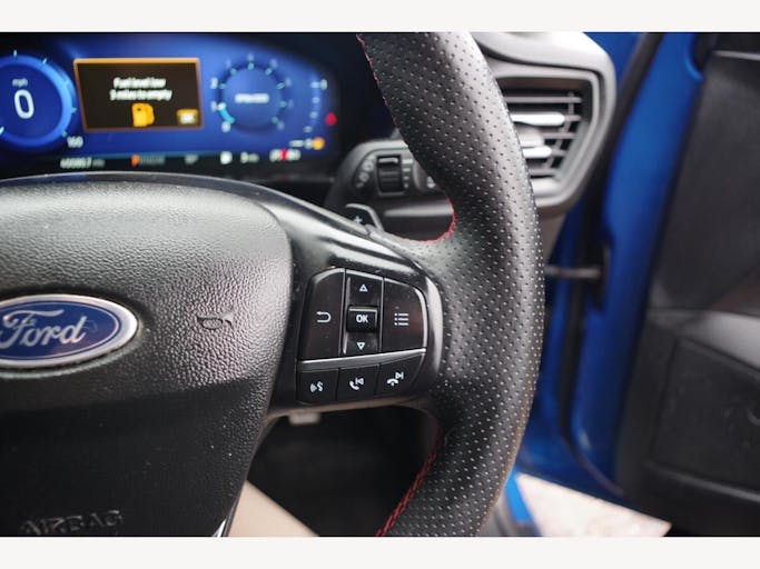 18in Alloy Wheels - 5x3 Spoke - High Gloss Pearl Grey - Machined Finish, ABS - Anti-lock Braking System, Acoustic Laminated Windscreen, Airbags - Driver and Front Passenger, Airbags - Front Side Impact, Airbags - Front and Rear Side Curtain, Automatic Dimming Rear View Mirror, Black Finish on Upper Door Line, Centre Console - Premium with Short Sliding Armrest - Open Cup Holder - 12V Front and Rear Power Points, Courtesy Light - Ambient LED Courtesy Lighting, Cruise Control with Adjustable Speed Limiter, DEATC - Dual-Zone Electronic Automatic Temperature Control, Door Handles - Body Colour, Door Mirrors - Electrically-Operated - Heated - Power-Foldable - Puddle Lights - Side Indicators, EBA - Emergency Brake Assist, ESC - Electronic Stability Control, Easy Stow Tonneau Cover, Electric Parking Brake, Fog Light Bezel - Unique ST-Line, Ford Easy Fuel System, Ford Key Free System - Keyless Entry with Keyless Start, Ford SYNC4 Navigation with 13.2in Touchscreen, FordPass Connect, Front Bumper - Unique ST-Line - Body Colour Upper - Body Colour Extension, Front Passenger Airbag Deactivation Switch, Front Seat - Passenger 2-Way Manual Adjustment, Front Seatback Map Pockets - Driver and Passenger, Front Seats - Sports Style V-shape with High Bolster, Front and Rear Floor Mats with Double Stitching, Front and Rear Seatbelt Minder, Full Digital 12.3in Instrument Cluster, Full Fixed LED Headlight with LED Daytime Running Lights, Gearshift Knob - E-shifter Rotary Bezel, Headlight Bezel - Black, Headlights - Automatic On-Off, Hill Start Assist, Intelligent Speed Assistance, LED Front Fog Lights with Cornering Function, Lane-Keeping Aid with Lane-Keeping Assist, Large Rear Spoiler - Body Colour with Centre High Mounted Stop Light, Load Floor Carpet, Load Through Ski Hatch, Loadspace Tie-Down Loops, Locking Wheel Nuts, Luggage Compartment Power Point, MyKey, Overhead Console - Medium Length with Front and Rear LED Courtesy Lights, Parking Sensor - Front and Rear, Polished Twin Tailpipe, Power 4-Way Driver Seat Adjust, Power Rear Door Child Locks, Power Steering, Pre-Collision Assist with Autonomous Emergency Braking and Pedestrian-Cyclist Detection, Quickclear Heated Windscreen, Rain Sensitive Windshield Wipers, Rear Bumper - Unique ST-Line Body Colour with Body Colour Extension, Rear Fog Lamps, Rear Lights - LED, Rear Privacy Glass, Rear Seat - 60-40 Split Folding Seats, Rear Seat Fixed Cushion, Red Brake Calipers, Remote Central Locking and Engine Immobiliser, Remote Central-Double Locking, Roof Rails - Black-finish, ST-Line Badge, Seats - ISOFIX Mounting Provision for Child Seats, Selectable Drive Mode, Side Skirts - Unique Sport - Body Colour, Spare Wheel - Mini Steel, Sports Tuned Suspension, Steering Column - Rake and Reach Adjustment, Steering Wheel - 3-Spoke Sensico Trimmed with Integrated Audio Controls, Tailgate Wash-Wipe, Thatcham Category Alarm with Power Door Deadlocks, Traction Control - TC, Trailer Sway Control, Trip Computer, Tyre Pressure Monitoring System, Unique ST-Line Grille and Full Bodystyling Kit - Large Body Coloured Rear Spoiler, Windows - Electrically Operated Front and Rear with One Touch Opening and Closing, Winter Pack, Wireless Charging