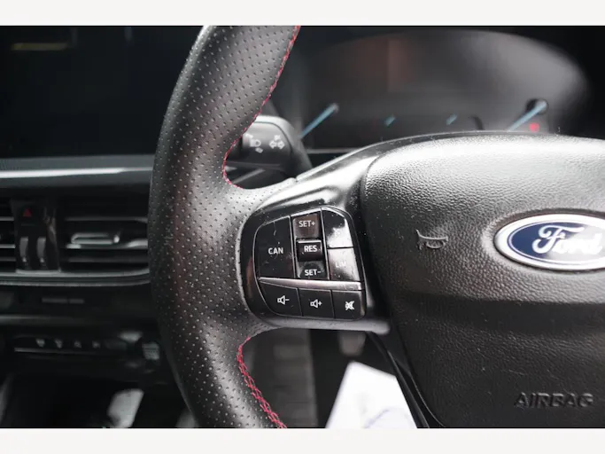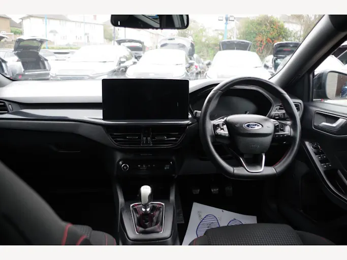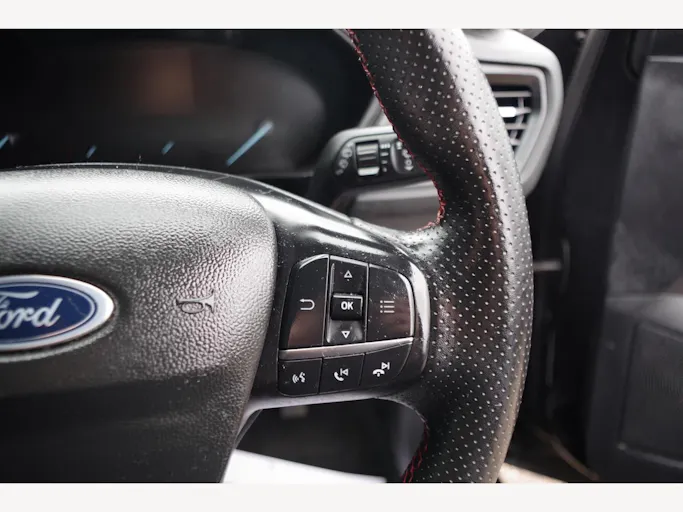 17in Alloy Wheels - 5-Spoke - Rock Metallic, 4.2in Colour TFT Ice Blue Illumination Analogue Cluster with Trip Computer, ABS - Anti-lock Braking System, Acoustic Laminated Windscreen, Airbags - Driver and Front Passenger, Airbags - Front Side Impact, Airbags - Front and Rear Side Curtain, Automatic Dimming Rear View Mirror, Black Finish on Upper Door Line, Centre Console - Premium with Sliding Armrest - Cupholder with Sliding Cover - 12V Front Power Point, Child Proof Rear Door Locks, Courtesy Light - Ambient LED Courtesy Lighting, Cruise Control with Adjustable Speed Limiter, DEATC - Dual-Zone Electronic Automatic Temperature Control, Door Handles - Body Colour, Door Mirrors - Electrically-Operated - Heated - Power-Foldable - Puddle Lights - Side Indicators, EBA - Emergency Brake Assist, ESC - Electronic Stability Control, Electric Parking Brake, Floor Mats - Front Velour, Fog Light Bezel - Unique ST-Line, Ford Easy Fuel System, Ford Key Free System - Keyless Entry with Keyless Start, Ford SYNC4 Navigation with 13.2in Touchscreen, FordPass Connect, Front Bumper - Unique ST-Line - Body Colour Upper - Body Colour Extension, Front Passenger Airbag Deactivation Switch, Front Seatback Map Pockets - Driver and Passenger, Front Seats - Sports Style V-shape with High Bolster, Front and Rear Seatbelt Minder, Full Fixed LED Headlight with LED Daytime Running Lights, Gearshift Knob - ST-Line Aluminium, Headlight Bezel - Black, Headlights - Automatic On-Off, Hill Start Assist, Intelligent Speed Assistance, LED Front Fog Lights with Cornering Function, Lane-Keeping Aid with Lane-Keeping Assist, Large Rear Spoiler - Body Colour with Centre High Mounted Stop Light, Load Compartment Area Cover, Load Floor Carpet, Locking Wheel Nuts, MyKey, Overhead Console - Medium Length with Front and Rear LED Courtesy Lights, Parking Sensor - Front and Rear, Polished Twin Tailpipe, Power Steering, Pre-Collision Assist with Autonomous Emergency Braking and Pedestrian-Cyclist Detection, Quickclear Heated Windscreen, Rain Sensitive Windshield Wipers, Rear Bumper - Unique ST-Line Body Colour with Body Colour Extension, Rear Fog Lamps, Rear Lights - LED, Rear Privacy Glass, Rear Seat - 60-40 Split Folding Seats, Rear Seat Fixed Cushion, Remote Central Locking and Engine Immobiliser, Remote Central-Double Locking, ST-Line Badge, Seat - Passengers 4-Way Manual Adjustment, Seats - Drivers 4-Way Manual Adjustment, Seats - ISOFIX Mounting Provision for Child Seats, Selectable Drive Mode, Side Skirts - Unique Sport - Body Colour, Spare Wheel - Mini Steel, Sports Tuned Suspension, Steering Column - Rake and Reach Adjustment, Steering Wheel - 3-Spoke Sensico Trimmed with Integrated Audio Controls, Tailgate Wash-Wipe, Thatcham Category Alarm with Power Door Deadlocks, Traction Control - TC, Trailer Sway Control, Trip Computer, Tyre Pressure Monitoring System, Unique ST-Line Grille and Full Bodystyling Kit - Large Body Coloured Rear Spoiler, Windows - Electrically Operated Front and Rear with One Touch Opening and Closing