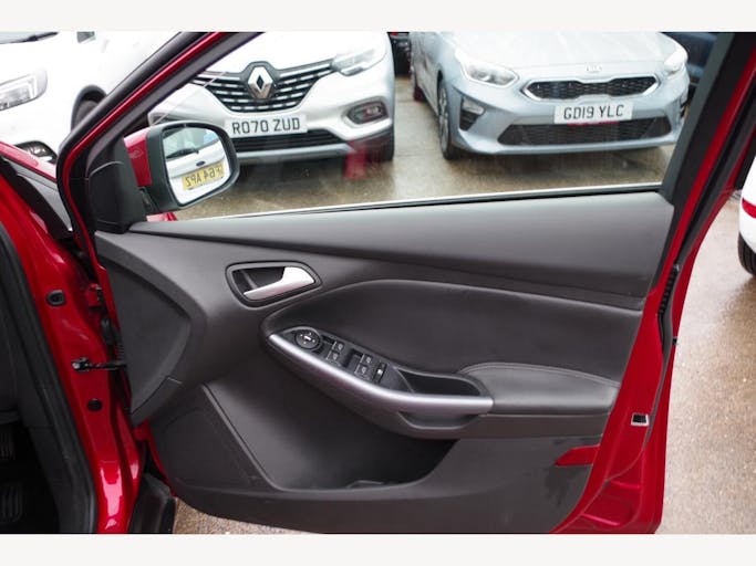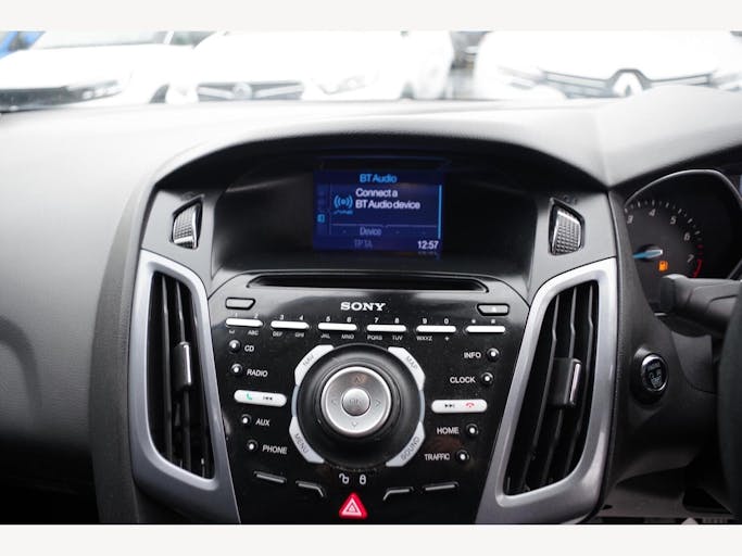 12V Power Socket - Front, 12V Power Socket - Rear, 17in Alloy Wheels - 15 Spoke, ABS - Anti-lock Braking System, Air Conditioning - Dual Zone Electronic Automatic Temperature Control, Airbags - Front Passenger, Airbags - Front and 2nd Row Curtain, Airbags - Side Impact, Armrest - Centre Console Mounted with Storage Box, Automatic Dimming Rear View Mirror, Automatic Rain Sensing Wipers, Bi-Xenon Headlights, Bluetooth Handsfree and Voice Control, Bright Finish on Upper Door Line, Centre Console - Two Cup Holders, Centre Console with open Stowage Bins, Chrome Finish on Upper Door Line, City Pack, Convenience Pack, Courtesy Light - Footwell Illumination, Cruise Control with Speed Limiter, DDS - Deflation Detection System, Door Mirrors - Heated - Electric - Auto Foldable - Integrated Side Indicators - Body Coloured, Drivers Airbag, EBA - Emergency Brake Assist, EBD - Electronic Brakeforce Distribution, EPAS - Electric Power Assisted Steering, ESP - Electronic Stability Programme, Electric Windows - Front and Rear with One Touch Drivers, Emergency Assistance, Emergency Brake Lights, Floor Mats - Carpet - Front and Rear, Ford AM-FM CD Audio System, Ford Easy-Fuel Capless Refuelling System, Ford Eco Mode - Driver Information System, Ford SYNC, Front Fog Lights, Front Parking Sensors, Front Seat - Passenger Manual Height Fore-Aft Adjustment, Front lower grille - High-gloss black, Front suspension - Independent with MacPherson Struts, Front upper grille - High-gloss black with chrome bar, Gear Knob - Leather, Gearshift Knob - Leather, Headlights - Automatic, Headlights - Follow Me Home, Headlights - Jet Wash, Heated Driver and Passenger Seats, Heated Front Windscreen, Heated Washer Jets, Hill Start Assist, IPS - Intelligent Protection System, ISOFIX - Child Seat Attachments, Interior Door Lever - Chrome Finish, LED Ambient Courtesy Lighting, LED Daytime Running Lights, Locking Wheel Nuts, Map reading lights front and rear, Mini Steel Spare Wheel, Park Assist - Active, Parking Sensor - Rear, Pollen Filter, Premium Centre Console, Premium Front and Rear Floor Mats, Rear Lights - LED, Rear Spoiler, Remote Central Locking, Scuff plates - Front aluminium-finish with Ford logo, Seats - 60-40 Rear Split Back, Seats - Drivers Lumbar Support, Seats - Drivers Power Height and Fore-Aft Adjustment, Seats - Front Sports, Seats - Passenger Height Adjustment, Seats - Passenger Lumbar Support, Sony DAB Audio System, Steering Column - Rake and Reach Adjustment, Steering Wheel - 4 Spoke Leather Trimmed, Steering Wheel - Multifunction, TFT Display screen, TVC - Torque Vectoring Control, Thatcham Category 1 Alarm, Traction Control - TC, Trip Computer, USB Connection - iPod Connectivity, Z-Shape Handbrake