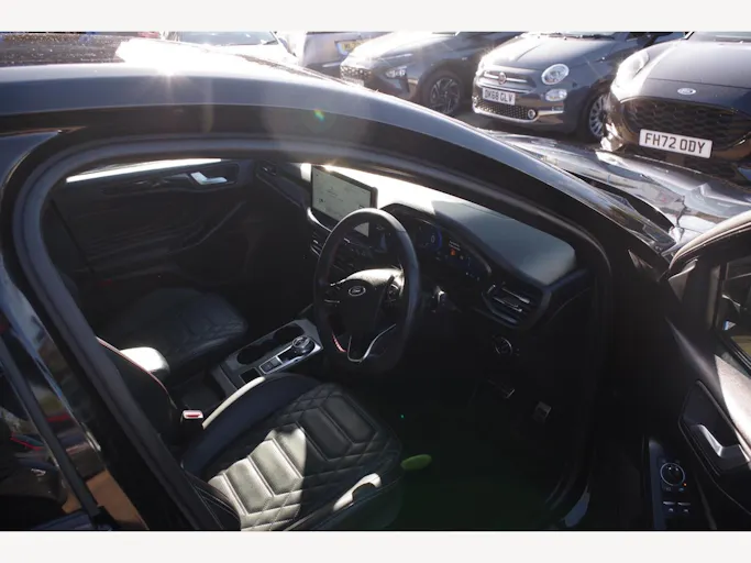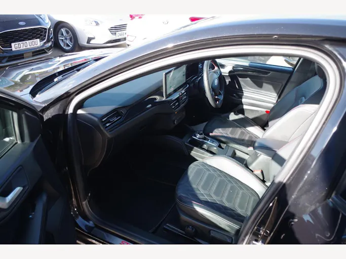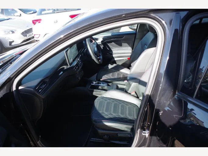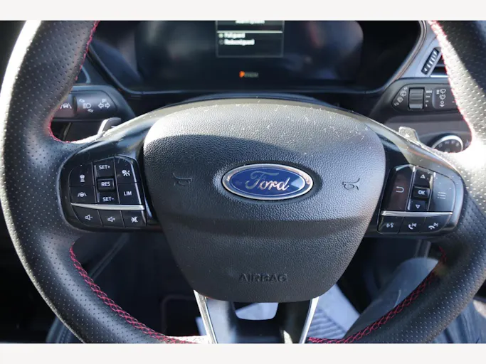 18in Alloy Wheels - 5x3 Spoke - High Gloss Pearl Grey - Machined Finish, ABS - Anti-lock Braking System, Acoustic Laminated Windscreen, Airbags - Driver and Front Passenger, Airbags - Front Side Impact, Airbags - Front and Rear Side Curtain, Automatic Dimming Rear View Mirror, Black Finish on Upper Door Line, Centre Console - Premium with Short Sliding Armrest - Open Cup Holder - 12V Front and Rear Power Points, Courtesy Light - Ambient LED Courtesy Lighting, Cruise Control with Adjustable Speed Limiter, DEATC - Dual-Zone Electronic Automatic Temperature Control, Door Handles - Body Colour, Door Mirrors - Electrically-Operated - Heated - Power-Foldable - Puddle Lights - Side Indicators, EBA - Emergency Brake Assist, ESC - Electronic Stability Control, Electric Parking Brake, Fog Light Bezel - Unique ST-Line, Ford Easy Fuel System, Ford Key Free System - Keyless Entry with Keyless Start, Ford SYNC4 Navigation with 13.2in Touchscreen, FordPass Connect, Front Bumper - Unique ST-Line - Body Colour Upper - Body Colour Extension, Front Passenger Airbag Deactivation Switch, Front Seatback Map Pockets - Driver and Passenger, Front Seats - Sports Style V-shape with High Bolster, Front and Rear Floor Mats with Double Stitching, Front and Rear Seatbelt Minder, Full Digital 12.3in Instrument Cluster, Full Fixed LED Headlight with LED Daytime Running Lights, Gearshift Knob - E-shifter Rotary Bezel, Headlight Bezel - Black, Headlights - Automatic On-Off, Hill Start Assist, Intelligent Speed Assistance, LED Front Fog Lights with Cornering Function, Lane-Keeping Aid with Lane-Keeping Assist, Large Rear Spoiler - Body Colour with Centre High Mounted Stop Light, Load Compartment Area Cover, Load Floor Carpet, Load Through Ski Hatch, Locking Wheel Nuts, MyKey, Overhead Console - Medium Length with Front and Rear LED Courtesy Lights, Parking Sensor - Front and Rear, Polished Twin Tailpipe, Power 4-Way Driver Seat Adjust, Power Rear Door Child Locks, Power Steering, Pre-Collision Assist with Autonomous Emergency Braking and Pedestrian-Cyclist Detection, Quickclear Heated Windscreen, Rain Sensitive Windshield Wipers, Rear Bumper - Unique ST-Line Body Colour with Body Colour Extension, Rear Fog Lamps, Rear Lights - LED, Rear Privacy Glass, Rear Seat - 60-40 Split Folding Seats, Rear Seat Fixed Cushion, Red Brake Calipers, Remote Central Locking and Engine Immobiliser, Remote Central-Double Locking, ST-Line Badge, Seat - Passengers 4-Way Manual Adjustment, Seats - ISOFIX Mounting Provision for Child Seats, Selectable Drive Mode, Side Skirts - Unique Sport - Body Colour, Spare Wheel - Mini Steel, Sports Tuned Suspension, Steering Column - Rake and Reach Adjustment, Steering Wheel - 3-Spoke Sensico Trimmed with Integrated Audio Controls, Tailgate Wash-Wipe, Thatcham Category Alarm with Power Door Deadlocks, Traction Control - TC, Trailer Sway Control, Trip Computer, Tyre Pressure Monitoring System, Unique ST-Line Grille and Full Bodystyling Kit - Large Body Coloured Rear Spoiler, Windows - Electrically Operated Front and Rear with One Touch Opening and Closing, Winter Pack, Wireless Charging