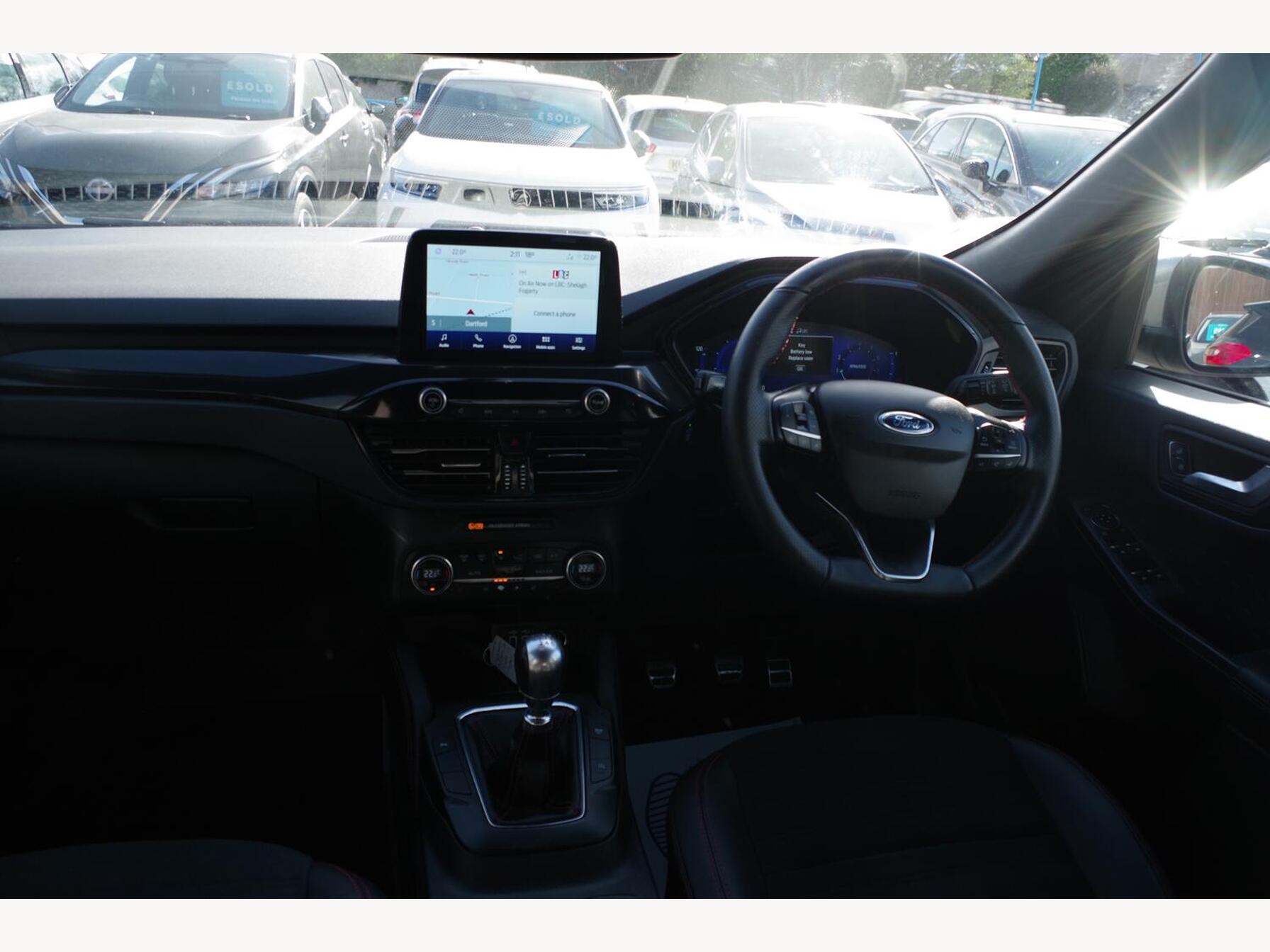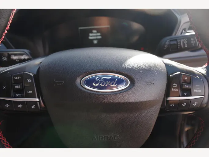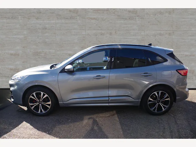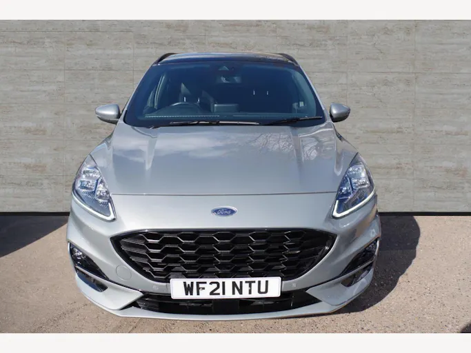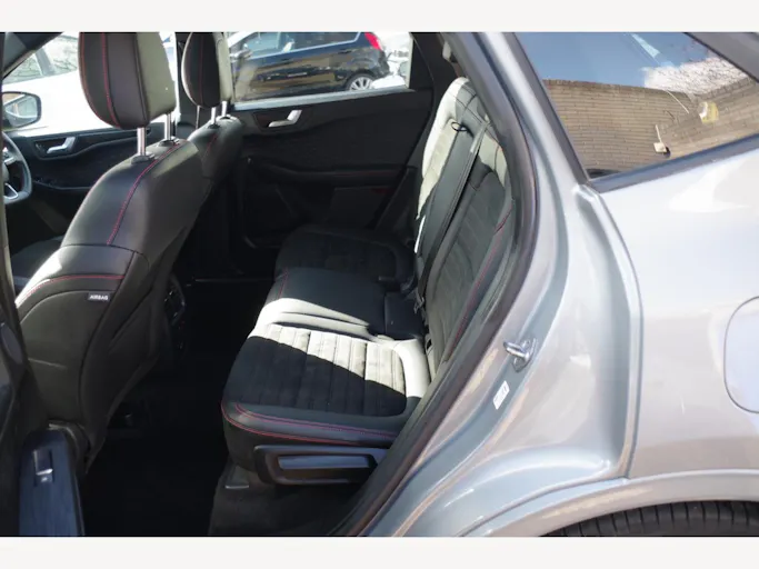 10-Way Power Adjustable Drivers Seat, 12V Power Point in Floor Console, 12v Power Point in Cargo Area, 12v Socket - Voltage Regulator, 19in Alloy Wheels - 5x2 Spoke - High Gloss - Machined, 2nd Row Sliding Seats with 60-40 Split, 8-Way Manual Passenger Seat including Lumbar Support and Height Adjust, Airbag - Driver and Front Passenger Side, Airbag - Front Passenger Deactivation Switch, Airbags - Driver and Front Passenger, Airbags - Front and Rear Side Curtain, Alloy Pedals, Aluminium - Finish Front Scuff Plates with ST-Line Script, Ambient Lighting, Auto Dimming Rear View Mirror, Auto Wipers, Automatic Door Relocking, Automatic Headlights with Auto High-Low Beam, B and O Premium Audio System with Large Instrument Cluster, Black Roof Rails, Centre Console with Electronic Parking Brake, Cruise Control with Adjustable Speed Limiter, Dark Headliner and Pillars, Driver and Passengers Sun Visor with Illumination, Dual Exhaust Tailpipes with Unique Brushed Stainless Steel Finish, Dual Zone Electronic Automatic Temperature Control - DEATC, EPAS - Electric Power Assisted Steering, ESC - Electronic Stability Programme and ABS - Anti Lock Braking System, Engine Immobiliser - SecuriLock, Exterior Door Handles - Body Coloured, Flat Bottom Steering Wheel in Sensico with Red Stitching, Floor Mats - Front and Rear - ST-Line, Ford Easy Fuel System, Ford Key Free System with Ford Power Start Button - Keyless Start, FordPass Connect, Front LED Fog Lights with Cornering Function, Front Seats - 2-Way Manual Height Adjust Passive Head Restraints, Front Seats - Drivers and Passengers Seatback Map Pockets, Front Windows - Laminated Glass, Front and Rear Bumper - Sporty Body Colour with Rear Ebony High-Gloss Insert, Front and Rear Parking Sensors, Full Digital 12.3in Instrument Cluster, Full LED Headlamps, Gear Shift - Unique Leather Trimmed Knob with Satin Aluminium Insert and Red Gaiter Stitching, Glovebox Lights, Handsfree Power Tailgate, Headlights - Automatic Follow Me Home Lighting, Headlights - Unique Bending, Heated Driver and Passenger Seats, Heated Rear Seats, Heated and Power Folding Door Mirrors with Puddle Lights, High-Mounted Brake Light, Intelligent Speed Assist, Kuga Badge, LED Daytime Running Lights, Lane Keeping Aid with Lane Departure Warning, Large Rear Spoiler, Load Compartment - Lights, Load Compartment - Tie Down Hooks, Load Compartment Carpet, Locking Wheel Nuts, Lower Bodyside Moulding - Body Colour, Lower Door Frame Beltline - Black, Manual Childproof Locks on Rear Doors, Mini Overhead Console with Sunglasses Holder Bin, Mobile Phone Wireless Charging Pad, MyKey Gen II, Post Collision Braking, Power Door Deadlocks - Double Locking, Power Door Locks, Power Front and Rear Windows with Shot up and Down - One Global Closing, Power Opening Panoramic Roof, Pre-Collision Assist with Autonomous Emergency Braking - Camera Detection, Privacy Glass, Quickclear Heated Windscreen, Rear Lights - LED, Rear Seat Centre Head Restraint, Rear Seats - 2-Way Head Restraint Up-Down, Rear Seats - Folding Centre Armrest with Integrated Cup Holder, Rear Seats - Sliding Seat Adjust Tracks - Fore-Aft, Rear View Camera, Red Brake Calipers, Remote Power Central Double Locking Doors, Remote Tailgate Release, Removable Package Tray, Rocker Panel Mouldings - Body Colour - ST-Line Design, ST-Line Badge on Left and Right Side Wings, ST-Line Bodystyling Kit, ST-Line Front and Rear Bumper Moulding - Body Colour, ST-Line Leather Gear Knob, Satellite Navigation - Navigation Center, Seat Belt - Drivers - Front Passenger and Rear Seat Belt Reminder Alert, Seat Belts - Front 3-Point Seatbelts with Load Limiter, Seat Belts - Front Height Adjustable, Seat Belts - Rear Retractable Rear Belt - 3-Point All Positions, Seats - ISOFIX Mounting Provision for Child Seats - Outer Seats Only, Selectable Drive Modes, Sports Seats, Standard Duty Suspension, Steering Column - Locking Electric, Steering Column - Rake and Reach Adjustment, Tailgate Handle - Body Colour, Tether Anchorage - Two Rear Seat Top Tether Anchorage Restraints, Thatcham Category 1 Perimeter and Volume Sensing Alarm, Tow Hooks - Front and Rear, Trip Computer, Twin Exhausts, Tyre Inflation Kit, Tyre Pressure Monitoring System, Upper Door Frame Beltline - Black, Wiper - Intermittent Rear Window Wiper, Wrong Way Alert