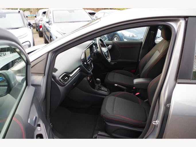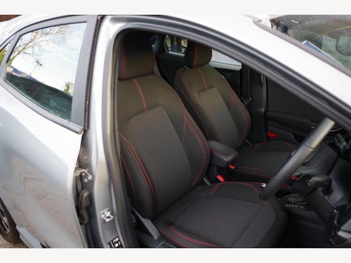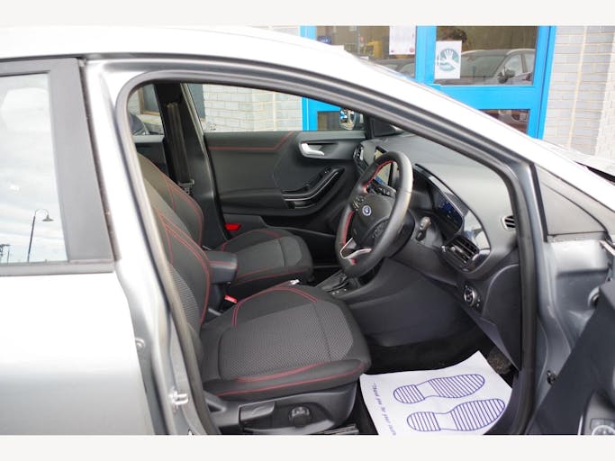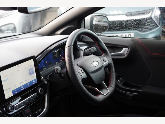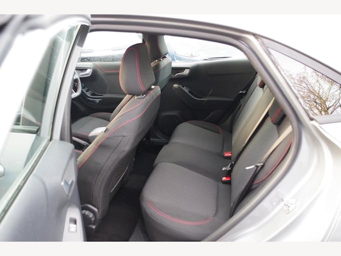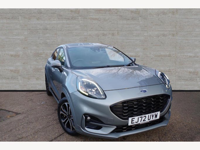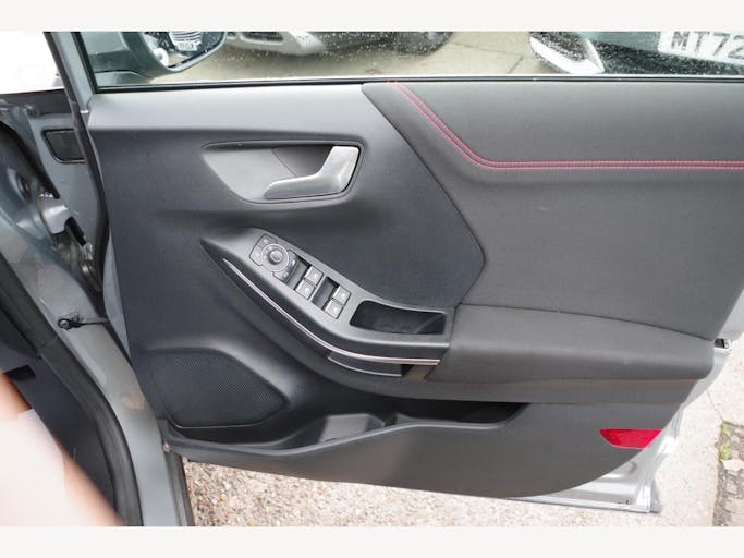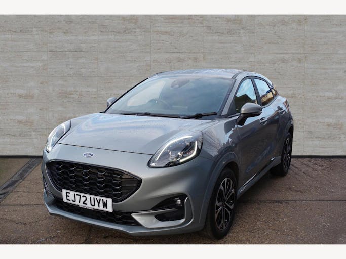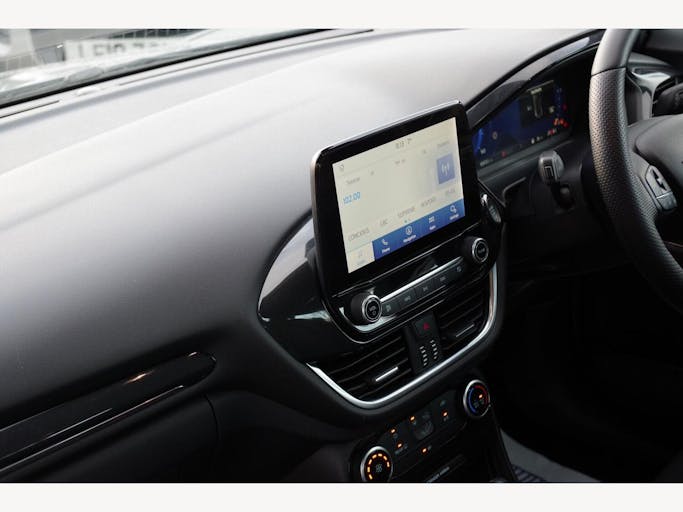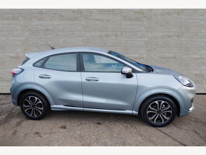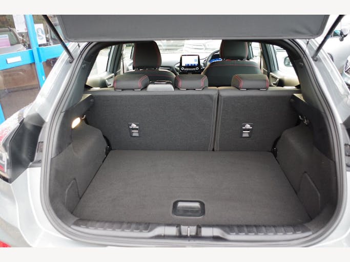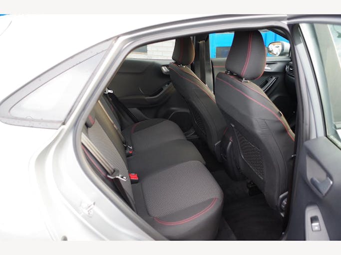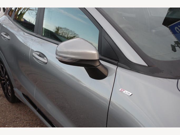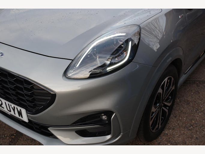 17in Alloy Wheels - 5x2 Spoke - Black Machined Finish, ABS - Anti-lock Braking System, Acoustic Laminated Windscreen, Active Grille Shutter, Automatic Dimming Rear View Mirror, Automatic Headlights with Rain-Sensing Wipers and Auto High Beam, Centre Console - Premium with Openable Stowage Area with USB Connectivity - 2 Cupholders and 12v Power Point, Courtesy Lights - Ambient LED Courtesy Lighting - Single Colour, Cruise Control - Lane Keeping Aid and Lane Departure Warning, Driver Assistance Pack - Design, Drivers Manual 4-Way Seat Adjustment with Manual Lumbar Adjust, ESC - Electronic Stability Control and Hill Start Assist, Ecoboost Hybrid Tailgate Badge, Electric Windows - Front and Rear, Emergency Brake Warning - Automatic Hazard Warning Lights, First Aid Kit Strap, Floor Mats - Front and Rear, Ford MegaBox Extended Bootspace, Ford Power Starter Button, Ford SYNC 3 Navigation, Front Bumper - Unique ST-Line Sport Design - Body Colour, Front Fog Lights with Cornering lights and LED Rear Lamps, Full Digital 12.3in Instrument Cluster, Gearshift Knob - Soft Feel with Red Stitching, Handbrake - Black Sensico Trimmed with Stitching, Headliner - Deluxe, Instrument Panel - High Level, Intelligent Speed Assistance, Large Rear Spoiler - Body Colour with Centre High Mounted Stop Light, Locking Wheel Nuts, Lower Bodyside Moulding - Body Colour, Manual Air Conditioning, Passengers Seat - 2-Way, Post Collision Braking, Power Steering, Power-Foldable Heated Door Mirrors with Puddle Lamps, Pre-Collision Assist with Autonomous Emergency Braking and Pedestrian-Cyclist Detection, Projector Headlamps with LED Daytime Running Lights, Puma Badge, Quickclear Heated Windscreen, Rear Bumper Body Colour - Diffuser, Rear Parking Sensors, Rear Seats - 2-Way Head Restraint Up-Down, Rear Seats - Second Row 60-40 Folding Seats, Remote Central-Double Locking, Restrain Device Pack, ST-Line Badge, ST-Line Body Styling Kit, ST-Line Flat-Bottomed Leather Steering Wheel with Unique Red Stitching, Selectable Driving Modes - Normal - Eco - Sport - Slippery and Trail, Soft-feel Gearshift Boot with Red Stitching, Speed Limiter, Sports Suspension, Tailgate - Manual, Thatcham Alarm, Traction Control and Emergency Braking Assistance, Trip-Fuel Computer, Tyre Pressure Monitoring System - TPMS