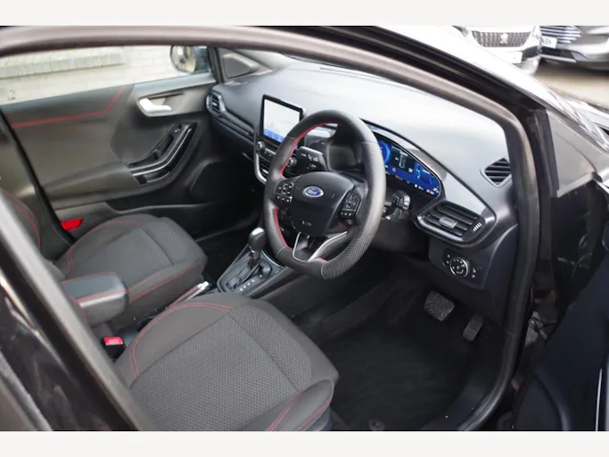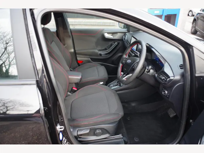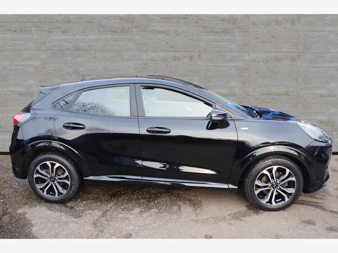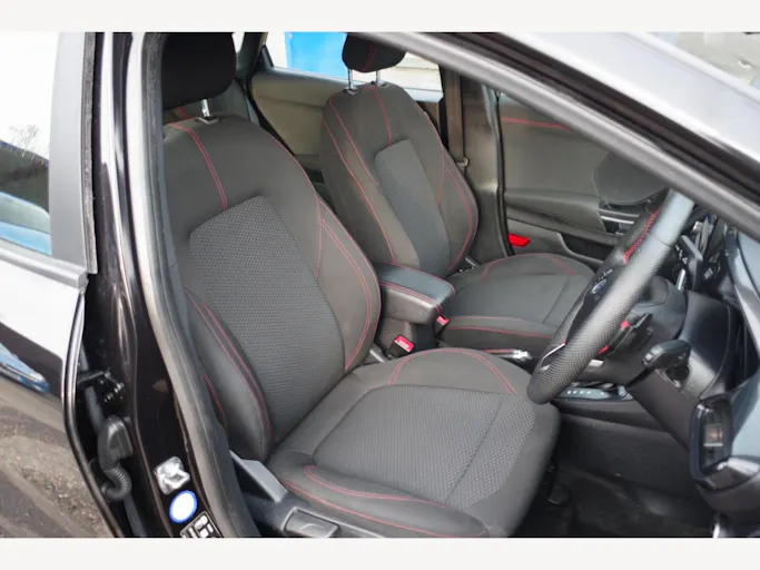 17in Alloy Wheels - 5x2 Spoke - Black Machined Finish, ABS - Anti-lock Braking System, Acoustic Laminated Windscreen, Active Grille Shutter, Automatic Dimming Rear View Mirror, Automatic Headlights with Rain-Sensing Wipers and Auto High Beam, Centre Console - Premium with Openable Stowage Area with USB Connectivity - 2 Cupholders and 12v Power Point, Courtesy Lights - Ambient LED Courtesy Lighting - Single Colour, Cruise Control with Intelligent Speed Assist, Drivers Manual 4-Way Seat Adjustment with Manual Lumbar Adjust, ESC - Electronic Stability Control and Hill Start Assist, Ecoboost Hybrid Tailgate Badge, Electric Windows - Front and Rear, Emergency Brake Warning - Automatic Hazard Warning Lights, First Aid Kit Strap, Floor Mats - Front and Rear, Ford MegaBox Extended Bootspace, Ford Power Starter Button, Ford SYNC 3 Navigation, Front Bumper - Unique ST-Line Sport Design - Body Colour, Front Fog Lights with Cornering lights and LED Rear Lamps, Front Seats - Sports Style, Full Digital 12.3in Instrument Cluster, Gearshift Knob - Soft Feel with Red Stitching, Handbrake - Black Sensico Trimmed with Stitching, Headliner - Deluxe, Instrument Panel - High Level, Intelligent Speed Assistance, Lane Keeping Aid with Lane Departure Warning, Large Rear Spoiler - Body Colour with Centre High Mounted Stop Light, Locking Wheel Nuts, Lower Bodyside Moulding - Body Colour, Manual Air Conditioning, Passengers Seat - 2-Way, Post Collision Braking, Power Steering, Power-Foldable Heated Door Mirrors with Puddle Lamps, Pre-Collision Assist with Autonomous Emergency Braking and Pedestrian-Cyclist Detection, Projector Headlamps with LED Daytime Running Lights, Puma Badge, Quickclear Heated Windscreen, Rear Bumper Body Colour - Diffuser, Rear Parking Sensors, Rear Seats - 2-Way Head Restraint Up-Down, Rear Seats - Second Row 60-40 Folding Seats, Remote Central-Double Locking, Restrain Device Pack, ST-Line Badge, ST-Line Body Styling Kit, ST-Line Flat-Bottomed Leather Steering Wheel with Unique Red Stitching, Selectable Driving Modes - Normal - Eco - Sport - Slippery and Trail, Soft-feel Gearshift Boot with Red Stitching, Speed Limiter, Sports Suspension, Tailgate - Manual, Thatcham Alarm, Traction Control and Emergency Braking Assistance, Trip-Fuel Computer, Tyre Inflation Kit, Tyre Pressure Monitoring System - TPMS
