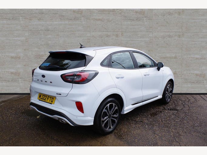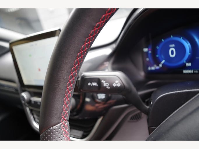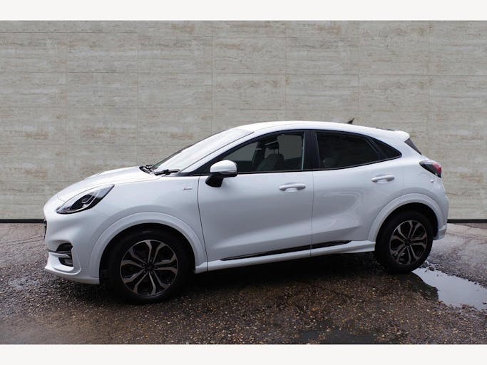 17in Alloy Wheels - 5x2 Spoke - Black Machined Finish, ABS - Anti-lock Braking System, Acoustic Laminated Windscreen, Active Grille Shutter, Automatic Dimming Rear View Mirror, Automatic Headlights with Rain-Sensing Wipers and Auto High Beam, Centre Console - Premium with Openable Stowage Area with USB Connectivity - 2 Cupholders and 12v Power Point, Courtesy Lights - Ambient LED Courtesy Lighting - Single Colour, Cruise Control - Lane Keeping Aid and Lane Departure Warning, Driver Assistance Pack - Design, Drivers Manual 4-Way Seat Adjustment with Manual Lumbar Adjust, ESC - Electronic Stability Control and Hill Start Assist, Ecoboost Hybrid Tailgate Badge, Electric Windows - Front and Rear, Emergency Brake Warning - Automatic Hazard Warning Lights, First Aid Kit Strap, Floor Mats - Front and Rear, Ford MegaBox Extended Bootspace, Ford Power Starter Button, Ford SYNC 3 Navigation, Front Bumper - Unique ST-Line Sport Design - Body Colour, Front Fog Lights with Cornering lights and LED Rear Lamps, Full Digital 12.3in Instrument Cluster, Gear Knob - Aluminium, Handbrake - Black Sensico Trimmed with Stitching, Headliner - Deluxe, Instrument Panel - High Level, Intelligent Speed Assistance, Large Rear Spoiler - Body Colour with Centre High Mounted Stop Light, Locking Wheel Nuts, Lower Bodyside Moulding - Body Colour, Manual Air Conditioning, Passengers Seat - 2-Way, Post Collision Braking, Power Steering, Power-Foldable Heated Door Mirrors with Puddle Lamps, Pre-Collision Assist with Autonomous Emergency Braking and Pedestrian-Cyclist Detection, Projector Headlamps with LED Daytime Running Lights, Puma Badge, Quickclear Heated Windscreen, Rear Bumper Body Colour - Diffuser, Rear Parking Sensors, Rear Seats - 2-Way Head Restraint Up-Down, Rear Seats - Second Row 60-40 Folding Seats, Remote Central-Double Locking, Restrain Device Pack, ST-Line Badge, ST-Line Body Styling Kit, ST-Line Flat-Bottomed Leather Steering Wheel with Unique Red Stitching, Selectable Driving Modes - Normal - Eco - Sport - Slippery and Trail, Soft-feel Gearshift Boot with Red Stitching, Speed Limiter, Sports Suspension, Tailgate - Manual, Thatcham Alarm, Traction Control and Emergency Braking Assistance, Trip-Fuel Computer, Tyre Pressure Monitoring System - TPMS