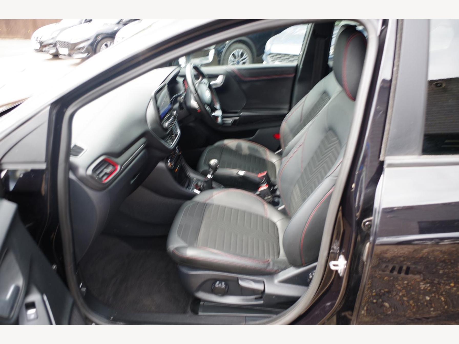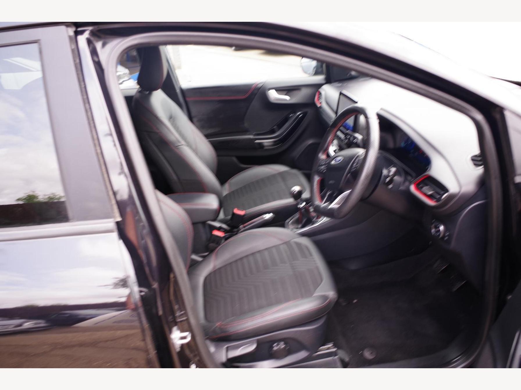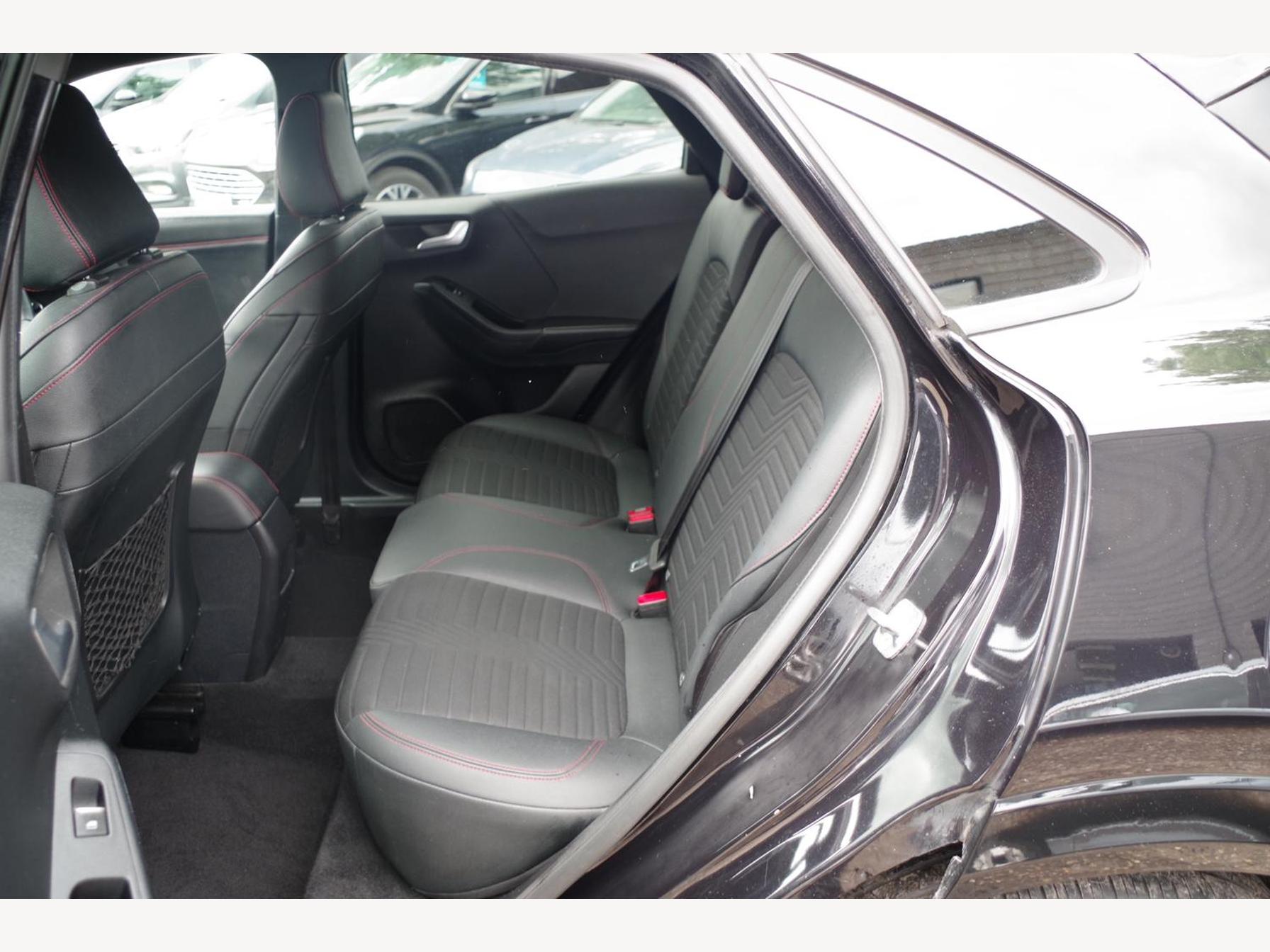 18in Alloy Wheels - 5-Spoke - Matt Black Machined Finish, ABS - Anti-lock Braking System, Acoustic Laminated Windscreen, Active Grille Shutter, Automatic Dimming Rear View Mirror, Automatic Headlights with Rain-Sensing Wipers and Auto High Beam, B&O Premium Audio System and Ford SYNC 3 Navigation, Carbon-Look Interior Deco Spears, Centre Console - Premium with Openable Stowage Area with USB Connectivity - 2 Cupholders and 12v Power Point, Courtesy Lights - Ambient LED Courtesy Lighting - Single Colour, Cruise Control - Lane Keeping Aid and Lane Departure Warning, Driver and Passenger Seat Lumbar and Height Adjustment, Drivers Manual 4-Way Seat Adjustment with Manual Lumbar Adjust, ESC - Electronic Stability Control and Hill Start Assist, Ecoboost Hybrid Tailgate Badge, Electric Windows - Front and Rear, Electronic Air Temperature Control - EATC, Emergency Brake Warning - Automatic Hazard Warning Lights, First Aid Kit Strap, Floor Mats - Front and Rear, Ford MegaBox Extended Bootspace, Ford Power Starter Button, Front Bumper - Unique ST-Line Sport Design - Body Colour, Front Fog Lights with Cornering lights and LED Rear Lamps, Full Digital 12.3in Instrument Cluster, Gear Knob - Aluminium, Handbrake - Black Sensico Trimmed with Stitching, Headliner - Deluxe, Instrument Panel - High Level, Intelligent Speed Assistance, Large Rear Spoiler - Body Colour with Centre High Mounted Stop Light, Locking Wheel Nuts, Lower Bodyside Moulding - Body Colour, Passenger 4-Way Seat with Lumbar Adjustment, Post Collision Braking, Power Steering, Power-Foldable Heated Door Mirrors with Puddle Lamps, Pre-Collision Assist with Autonomous Emergency Braking and Pedestrian-Cyclist Detection, Privacy Glass, Projector Headlamps with LED Daytime Running Lights, Puma Badge, Quickclear Heated Windscreen, Rear Bumper Body Colour - Diffuser, Rear Parking Sensors, Rear Seats - 2-Way Head Restraint Up-Down, Rear Seats - Second Row 60-40 Folding Seats, Remote Central-Double Locking, Restrain Device Pack, ST-Line Badge, ST-Line Body Styling Kit, ST-Line Flat-Bottomed Leather Steering Wheel with Unique Red Stitching, Selectable Driving Modes - Normal - Eco - Sport - Slippery and Trail, Soft-feel Gearshift Boot with Red Stitching, Speed Limiter, Sports Suspension, Tailgate - Manual, Thatcham Alarm, Traction Control and Emergency Braking Assistance, Trip-Fuel Computer, Tyre Pressure Monitoring System - TPMS, Wireless Charging Pad with Electronic Air Temperature Control EATC