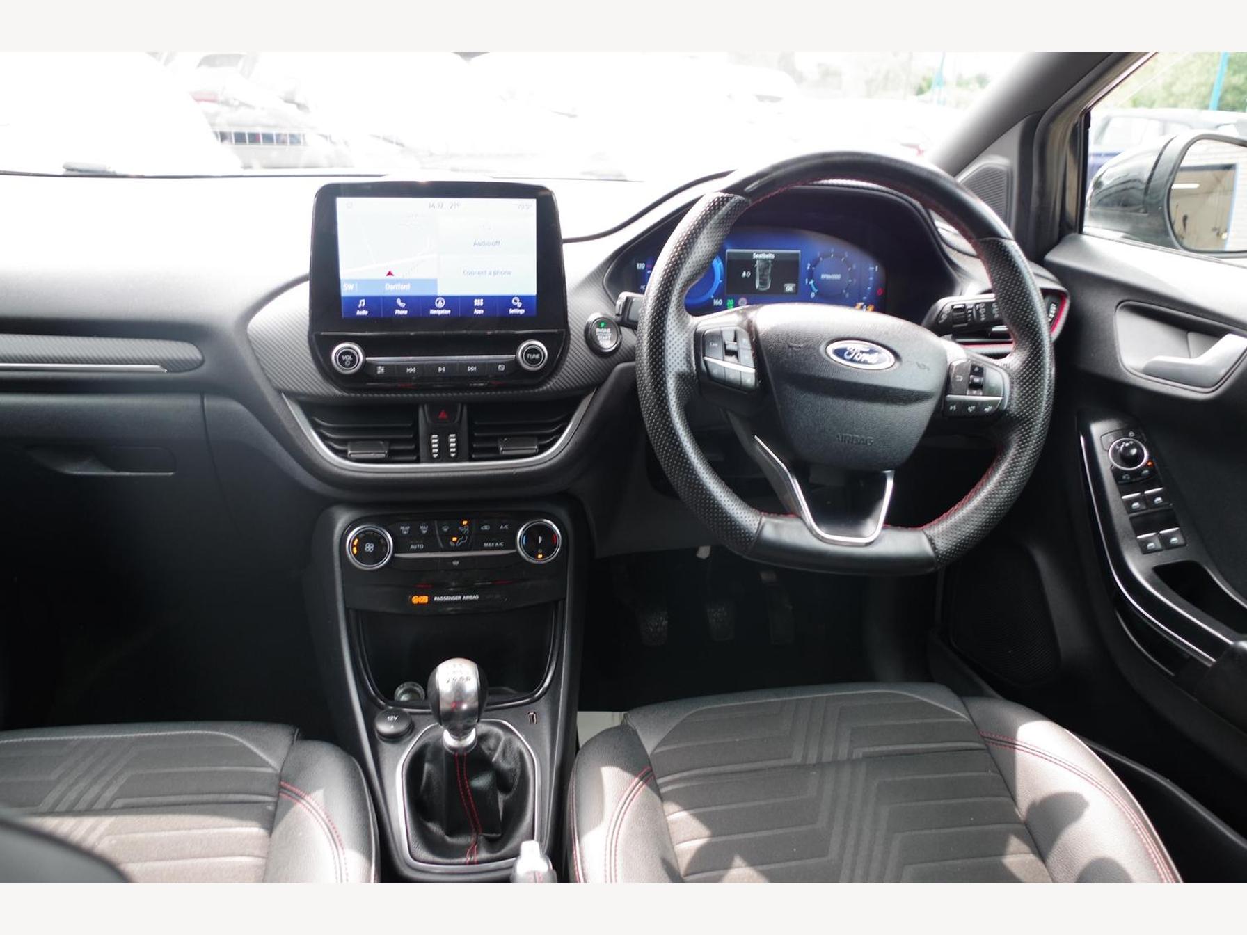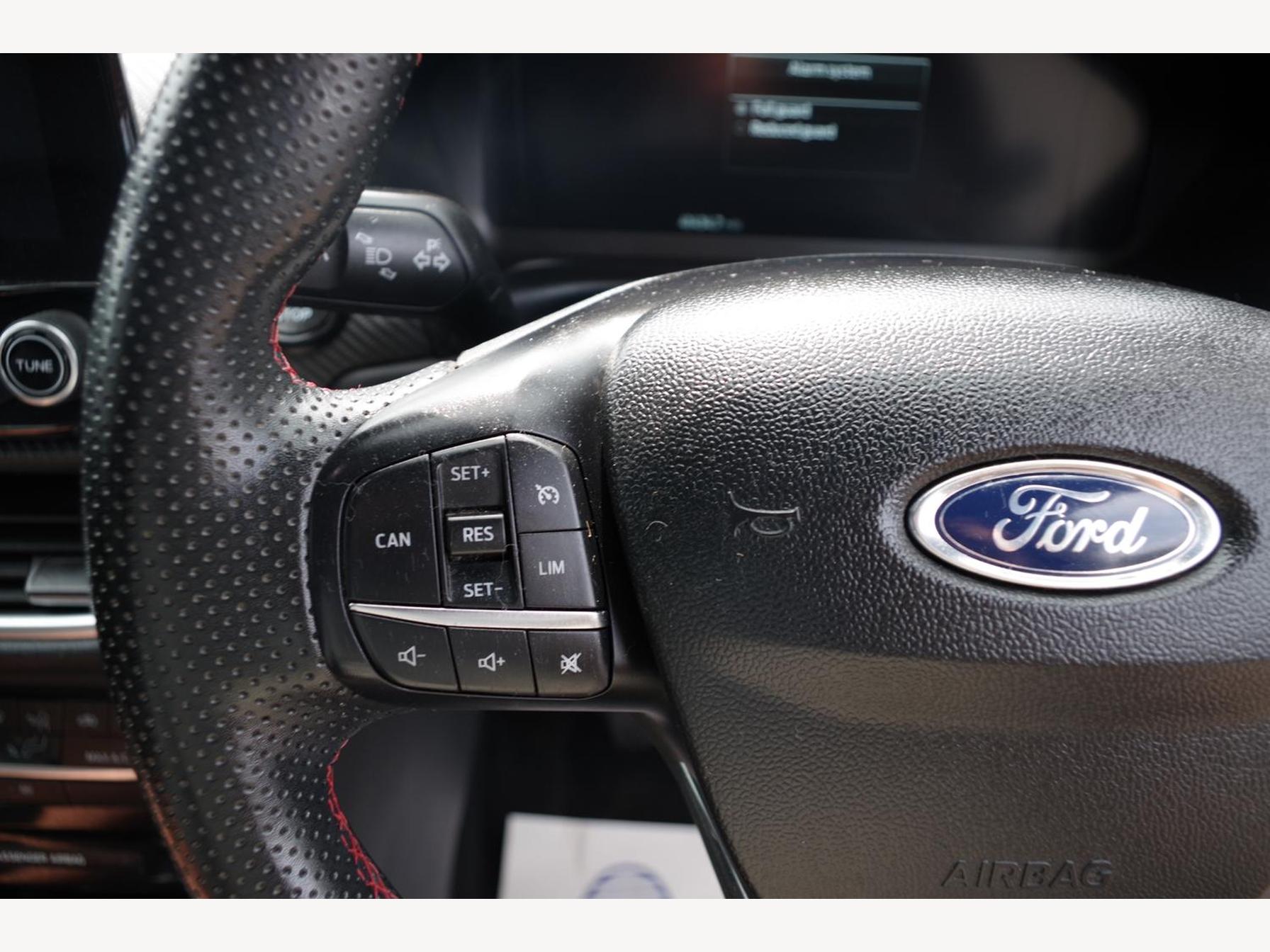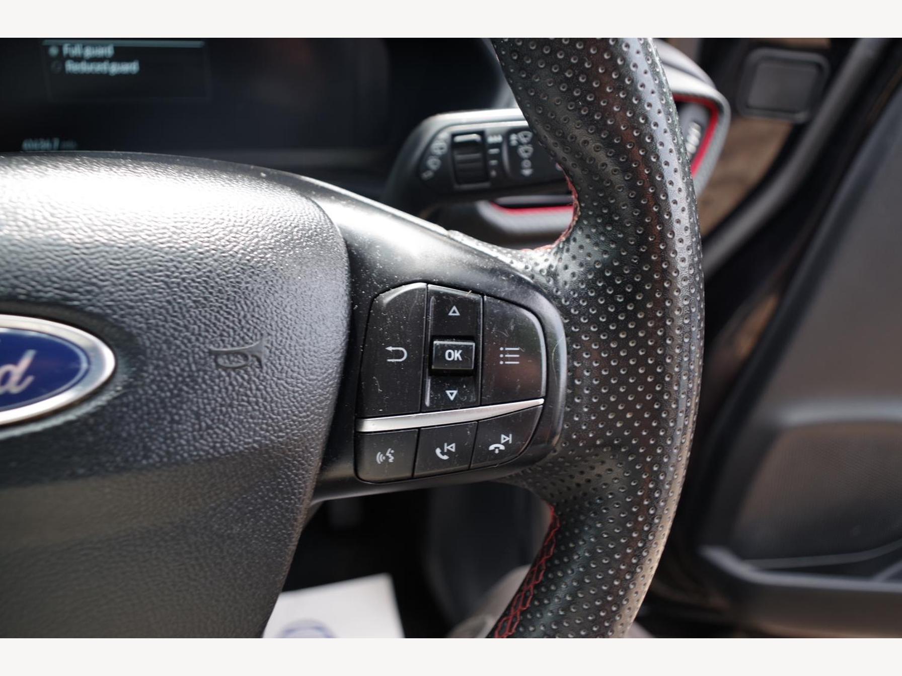 18in Alloy Wheels - 5-Spoke - Matt Black Machined Finish, ABS - Anti-lock Braking System, Acoustic Laminated Windscreen, Active Grille Shutter, Automatic Dimming Rear View Mirror, Automatic Headlights with Rain-Sensing Wipers and Auto High Beam, B&O Premium Audio System and Ford SYNC 3 Navigation, Carbon-Look Interior Deco Spears, Centre Console - Premium with Openable Stowage Area with USB Connectivity - 2 Cupholders and 12v Power Point, Courtesy Lights - Ambient LED Courtesy Lighting - Single Colour, Cruise Control - Lane Keeping Aid and Lane Departure Warning, Driver and Passenger Seat Lumbar and Height Adjustment, Drivers Manual 4-Way Seat Adjustment with Manual Lumbar Adjust, ESC - Electronic Stability Control and Hill Start Assist, Ecoboost Hybrid Tailgate Badge, Electric Windows - Front and Rear, Electronic Air Temperature Control - EATC, Emergency Brake Warning - Automatic Hazard Warning Lights, First Aid Kit Strap, Floor Mats - Front and Rear, Ford MegaBox Extended Bootspace, Ford Power Starter Button, Front Bumper - Unique ST-Line Sport Design - Body Colour, Front Fog Lights with Cornering lights and LED Rear Lamps, Full Digital 12.3in Instrument Cluster, Gear Knob - Aluminium, Handbrake - Black Sensico Trimmed with Stitching, Headliner - Deluxe, Instrument Panel - High Level, Intelligent Speed Assistance, Large Rear Spoiler - Body Colour with Centre High Mounted Stop Light, Locking Wheel Nuts, Lower Bodyside Moulding - Body Colour, Passenger 4-Way Seat with Lumbar Adjustment, Post Collision Braking, Power Steering, Power-Foldable Heated Door Mirrors with Puddle Lamps, Pre-Collision Assist with Autonomous Emergency Braking and Pedestrian-Cyclist Detection, Privacy Glass, Projector Headlamps with LED Daytime Running Lights, Puma Badge, Quickclear Heated Windscreen, Rear Bumper Body Colour - Diffuser, Rear Parking Sensors, Rear Seats - 2-Way Head Restraint Up-Down, Rear Seats - Second Row 60-40 Folding Seats, Remote Central-Double Locking, Restrain Device Pack, ST-Line Badge, ST-Line Body Styling Kit, ST-Line Flat-Bottomed Leather Steering Wheel with Unique Red Stitching, Selectable Driving Modes - Normal - Eco - Sport - Slippery and Trail, Soft-feel Gearshift Boot with Red Stitching, Speed Limiter, Sports Suspension, Tailgate - Manual, Thatcham Alarm, Traction Control and Emergency Braking Assistance, Trip-Fuel Computer, Tyre Pressure Monitoring System - TPMS, Wireless Charging Pad with Electronic Air Temperature Control EATC