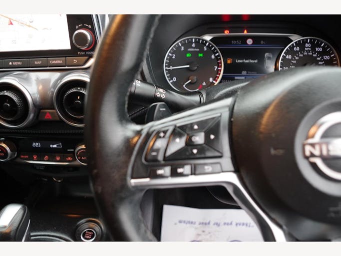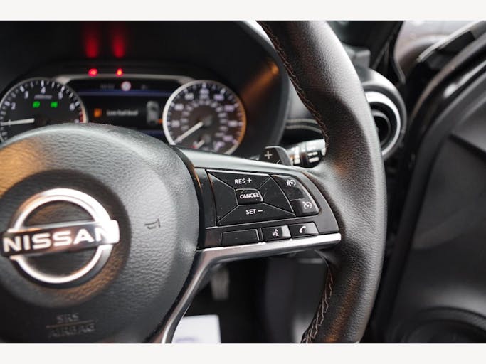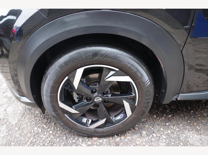 17in Alloy Wheels, 2 x Cup Holder on Centre Console, 3 Adjustable Rear Head Restraints, 60-40 Split Rear Folding Seats, 7in Full Colour TFT Screen Combimeter, ABS with EBD and Brake Assist, Active Ride Control, Active Trace Control, Android Auto and Apple CarPlay, Auto Dimming Rear View Mirror, Automatic Air Conditioning, Automatic Hazard Signal and Emergency Stop Signal, Body Coloured Handles, Cabin Light Front and Rear, Chrome Interior Door Handles, Cruise Control, DAB Radio, Drive Modes - Sport-Normal-Eco, Driver and Passenger Sun Visor with Vanity Mirror, Driver-Passenger-Side and Curtain Airbags, ESP - Electronic Stability Programme, Electric Heated Auto-Folding Door Mirrors, Electric Parking Brake with Auto Hold Function, Emergency and Breakdown Call, Exterior Mirrors Painted Pearl Black, Front Armrest, Front Door Pockets with Drinks Bottle Holders, Front Seat Belt Height Adjustment, Front and Rear Electric Windows with One Touch Driver Window, Front and Rear Seatbelt Reminder, Grab Handles Passenger and Rear, Headlights - Follow Me Home Function, Headlights - High Beam Assist, Height Adjustable Driver Seat, Hill Start Assist, ISOFIX Child Seat Anchoring Points - Rear x2, Intelligent Emergency Braking with Pedestrian and Cyclist Recognition, Intelligent Key with Start Push Button, Intelligent Lane Intervention and Warning, LED Daytime Running Lights, LED Headlights, LED Rear Fog Lights, LED Rear Lights, Leather Gear Knob, Leather Steering Wheel, Luggage Board System, Luggage Space Lighting, Monoform Sporty Seats, Multifunctional Steering Wheel, NissanConnect 8in Touchscreen Entertainment System, Outside Temperature Sensor, Parking Sensor - Front, Power Assisted Steering, Privacy Glass, Rain Sensing Wipers, Rear Coat Hanger - Drivers Side, Rear Console USB Port, Rear Parking Camera, Rear Parking Sensors, Rear Spoiler, Shark Fin Antenna - Pearl Black, Speakers x6, Speed Limiter, Steering Wheel - Paddle Shift, Syntech Leather Knee Pad, TPMS - Tyre Pressure Monitoring System, Telescopic Steering Wheel Adjustment, Three Blink Turn Signal, Traffic Sign Recognition, Tyre Repair Kit, USB-AUX Socket Input and Bluetooth Connectivity, VDC - Vehicle Dynamic Control, Welcome Light and Console Tray Ambient Lighting, WiFi and Voice Recognition