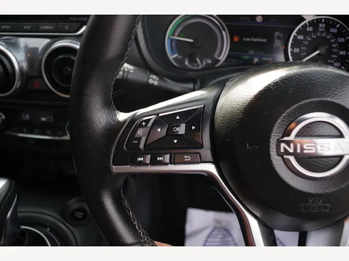17in Alloy Wheels - Two Tone, 3 Adjustable Rear Head Restraints, 6 Speakers, 60-40 Split Folding Rear Seats, 7in Full Colour TFT Screen Combimeter, ABS with EBD and Brake Assist, Active Ride Control, Active Trace Control, Airbag - Driver, Airbag - Front Passenger, Apple CarPlay and Google Android Auto, Auto Dimming Rear View Mirror, Automatic Climate Control, Automatic Hazard Signal and Emergency Stop Signal, Cabin Light Front and Rear, Cruise Control and Speed Limiter, DAB Radio, Door Handles Body Coloured, Drive Modes - Sport-Normal-Eco, Driver and Passenger Sun Visor with Vanity Mirror, Driver-Passenger and Rear Seatbelt Reminder, E-Pedal STEP, ESP - Electronic Stability Programme, EV Mode Switch, Electric Handbrake with Auto Hold Function, Electronically Adjustable - Heated and Auto Folding Door Mirrors with Integrated Indicators, Emergency and Breakdown Call, Follow Me Home Headlights, Front Armrest, Front Doors with Bottle Holders, Front Parking Sensors, Front and Rear Electric Windows with One Touch Driver Window, Grab Handles Passenger and Rear, Height Adjustable Driver Seat, Height Adjustable Seatbelts, High Beam Assist, Hill Start Assist, Intelligent Emergency Braking with Pedestrian and Cyclist Recognition, Intelligent Key and Start Push Button with Walk Away Lock and Approach Unlock Functions, Intelligent Lane Intervention, Interior Chrome Door Handles, LED Daytime Running Lights, LED Headlights, LED Rear Fog Light, LED Rear Lights, Lane Departure Warning, Leather Shift Knob, Leather Steering Wheel, Luggage Board, Luggage Space Lighting, Monoform Sporty Seats, Multifunctional Steering Wheel, NissanConnect 8in Touchscreen Entertainment System, NissanConnect Navigation with TomTom Traffic, NissanConnect Services, Outside Temperature Sensor, Power Steering, Puncture Repair Kit, Rain Sensing Wipers, Rear Coat Hanger - Drivers Side, Rear Console USB Port, Rear Parking Sensors, Rear Privacy Glass, Rear Spoiler, Rear View Camera, Side and Curtain Airbags, Syntech Leather Knee Pad, TPMS - Tyre Pressure Monitoring System, Telescopic Steering Wheel Adjustment, Three Blink Turn Signal, Traffic Sign Recognition, Two Cup Holders in the Centre Console, Two Rear ISOFIX Child Seat Anchorage Point with Top Tether, USB-AUX Socket Input and Bluetooth Connectivity, VDC - Vehicle Dynamic Control, Welcome Light and Console Tray Ambient Lighting, WiFi and Voice Recognition