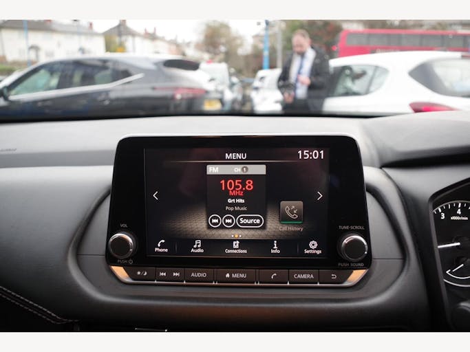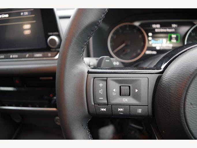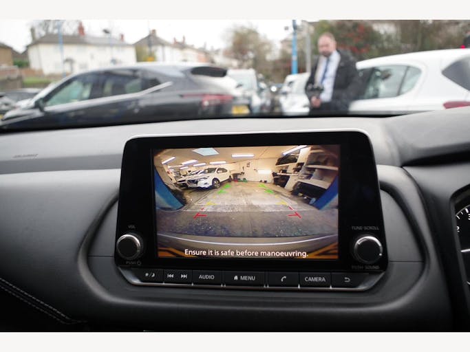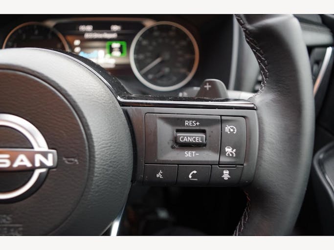 12v Power Sockets in Dash and Luggage Space, 17in Alloy Wheels, 3 Rear Headrests, 3 x 3-Point Rear Seatbelts, 4 Folding Assist Grip Plus 2 Coat Hooks Rear, 6 Speakers, 60-40 Split Rear Folding Seats, 7in High Definition Full Colour TFT Screen Combimeter, ABS with EBD and Brake Assist, AM-FM Audio System with DAB, Active Brake Limited Slip, Android Auto, Auto Dimming Rear View Mirror, Auto Hold Function, Auto Rear Wiper When Reversing, Automatic Dual Zone Climate Control with Pollen Filter, Blind Spot Warning, Bluetooth with Audio Streaming, Body Coloured Handles, Body Coloured Mirror Caps, Body Side Moulding, Capless Fuel Filler Cap, Chrome Interior Door Handles, Chrome Side Window Finisher, Curtain Airbags, Door Handle with Button, Door Mirror - Electrically Adjustable - Heated - Auto Folding with LED Turn Indicator, Drive Modes - Sport-Normal-Eco, Driver Seat Back Pockets, Driver and Passenger Airbags, Driver and Passenger Sun Visor with Illuminated Vanity Mirror, Driver-Passenger and Rear Seatbelt Reminder, Dusk Sensor, E-Call, Electric Adjustable Lumbar Support on Driver Seat, Electric Parking Brake, Electric Speed-Sensitive Power Steering, Emergency Stop Signal - Auto Hazard, Engine Immobiliser, Engine Start Button, FR - Front Reading and RR - Rear Reading and Luggage Room Lighting, Follow Me Home Headlights, Front Centre Console and Armrest, Front Cupholders x2, Front Door with Bottle Holders, Front Seat Belts with Load Limiter and Pretensioners, Front Seatbelt Height Adjustment, Front USB Connections - Type A and Type C, Glove Box with Light, Hard Trunk Cover, Headlights - High Beam Assist, Headlights - LED, Height Adjustable Driver Seat, Height Adjustable Front Headrests, Hill Start Assist, Intelligent Auto Headlight, Intelligent Blind Spot Intervention, Intelligent Cruise Control, Intelligent Driver Alertness, Intelligent Forward Collision Warning, Intelligent Front Emergency Braking with Pedestrian Recognition and Cyclist Recognition and Junction Assist, Intelligent Key, Intelligent Lane Intervention, Intelligent Rear Automatic Braking, LED Daytime Running Lights, LED Rear Lights, Lane Departure Prevention, Lane Departure Warning, Leather Steering Wheel, Maximum Speed Limiter, Multifunctional Steering Wheel, Nissan Connect 8in Touchscreen Infotainment System, One Touch Front and Rear Electric Windows with Remote Opening-Closing, One Touch Windows x4, Partially Body Coloured Bumpers, Passenger Seat Back Pockets, Puncture Repair Kit, Rain Sensing Wipers, Rear Bumper with Silver Insert, Rear Cross Traffic Alert, Rear Door Child Locks, Rear Door with Bottle Holders, Rear Parking Sensors, Rear Reversing Light - Bulb, Rear Roof Spoiler, Rear Seat Armrest with 2 Cupholders, Rear View Camera, Remote Central Locking with Deadlocking, Seats - Passengers Height Adjustment, Shark Fin Antenna, Splash Free Wipers, Steering Wheel Mounted Gearshift Paddles, Steering Wheel with Switches, Sunglasses Holder, TPMS - Tyre Pressure Monitoring System, Thatcham Alarm System, Three Blink Turn Signal, Tilt and Telescopic Adjustable Steering Wheel, Traffic Sign Recognition, Trip Computer, Two Rear ISOFIX Child Seat Anchorage Point with Top Tether, VDC - Vehicle Dynamic Control