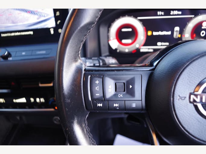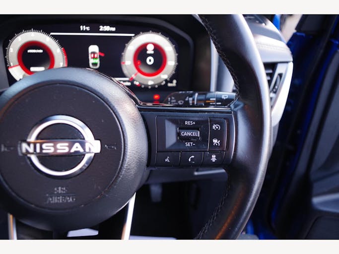 12v Power Sockets in Dash and Luggage Space, 18in Alloy Wheels - Diamond Cut, 3 Rear Headrests, 3 x 3-Point Rear Seatbelts, 4 Folding Assist Grip Plus 2 Coat Hooks Rear, 6 Luggage Hooks - 4 floor - 2 Side, 6 Speakers, 60-40 Split Rear Folding Seats, 7in High Definition Full Colour TFT Screen Combimeter, ABS with EBD and Brake Assist, AM-FM Audio System with DAB, Active Brake Limited Slip, Ambient Lighting Centre Console, Android Auto, Auto Dimming Rear View Mirror, Auto Hold Function, Auto Rear Wiper When Reversing, Automatic Dual Zone Climate Control with Pollen Filter, Blind Spot Warning, Bluetooth with Audio Streaming, Body Coloured Handles, Body Coloured Mirror Caps, Body Side Moulding, Capless Fuel Filler Cap, Chrome Interior Door Handles, Chrome Side Window Finisher, Curtain Airbags, Door Handle with Button, Door Mirror - Electrically Adjustable - Heated - Auto Folding with LED Turn Indicator, Drive Modes - Sport-Normal-Eco, Driver Seat Back Pockets, Driver and Passenger Airbags, Driver and Passenger Sun Visor with Illuminated Vanity Mirror, Driver-Passenger and Rear Seatbelt Reminder, Dusk Sensor, E-Call, Electric Adjustable Lumbar Support on Driver Seat, Electric Parking Brake, Electric Speed-Sensitive Power Steering, Emergency Stop Signal - Auto Hazard, Engine Immobiliser, Engine Start Button, FR - Front Reading and RR - Rear Reading and Luggage Room Lighting, Follow Me Home Headlights, Front Centre Console and Armrest, Front Cupholders x2, Front Door with Bottle Holders, Front Seat Belts with Load Limiter and Pretensioners, Front Seatbelt Height Adjustment, Front USB Connections - Type A and Type C, Front and Rear Parking Sensors, Glove Box with Light, Google Maps Services - Search - Weather - 3D Maps and Google Street View, Hard Trunk Cover, Headlights - High Beam Assist, Headlights - LED, Height Adjustable Driver Seat, Height Adjustable Front Headrests, Hill Start Assist, Intelligent Around View Monitor, Intelligent Auto Headlight, Intelligent Blind Spot Intervention, Intelligent Cruise Control, Intelligent Driver Alertness, Intelligent Forward Collision Warning, Intelligent Front Emergency Braking with Pedestrian Recognition and Cyclist Recognition and Junction Assist, Intelligent Key, Intelligent Lane Intervention, Intelligent Rear Automatic Braking, LED Daytime Running Lights, LED Rear Lights, Lane Departure Prevention, Lane Departure Warning, Leather Shift Knob, Leather Steering Wheel, Luggage Board System, Maximum Speed Limiter, Moving Object Detection, Multifunctional Steering Wheel, Nissan Connect 9in Touchscreen Infotainment System, NissanConnect Navigation, One Touch Front and Rear Electric Windows with Remote Opening-Closing, One Touch Windows x4, Partially Body Coloured Bumpers, Passenger Seat Back Pockets, Privacy Glass, Puncture Repair Kit, Rain Sensing Wipers, Rear Bumper with Silver Insert, Rear Cross Traffic Alert, Rear Door Child Locks, Rear Door with Bottle Holders, Rear Privacy Glass, Rear Reversing Light - Bulb, Rear Roof Spoiler, Rear Seat Armrest with 2 Cupholders, Rear Styling Plate, Rear USB Charging Only Ports - Type A and Type C, Rear View Camera, Remote Central Locking with Deadlocking, Remote Control Services - Door Locks - Lights - Horn and Car Locator, Seats - Passengers Height Adjustment, Shark Fin Antenna, Soft PVC Knee Pad, Splash Free Wipers, Steering Wheel with Switches, Sunglasses Holder, Super UV and Infrared Cut Glass, TPMS - Tyre Pressure Monitoring System, Telematics - Notifications and Connectivity Services, Thatcham Alarm System, Three Blink Turn Signal, Tilt and Telescopic Adjustable Steering Wheel, TomTom Services Live Traffic, Traffic Sign Recognition, Trip Computer, Two Rear ISOFIX Child Seat Anchorage Point with Top Tether, VDC - Vehicle Dynamic Control, Virtual Personal Assistant and Firmware Over The Air Capability, Welcome Light and Console Tray Ambient Lighting, Wireless Apple CarPlay