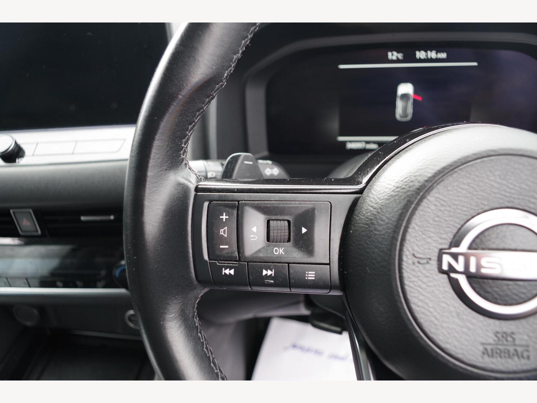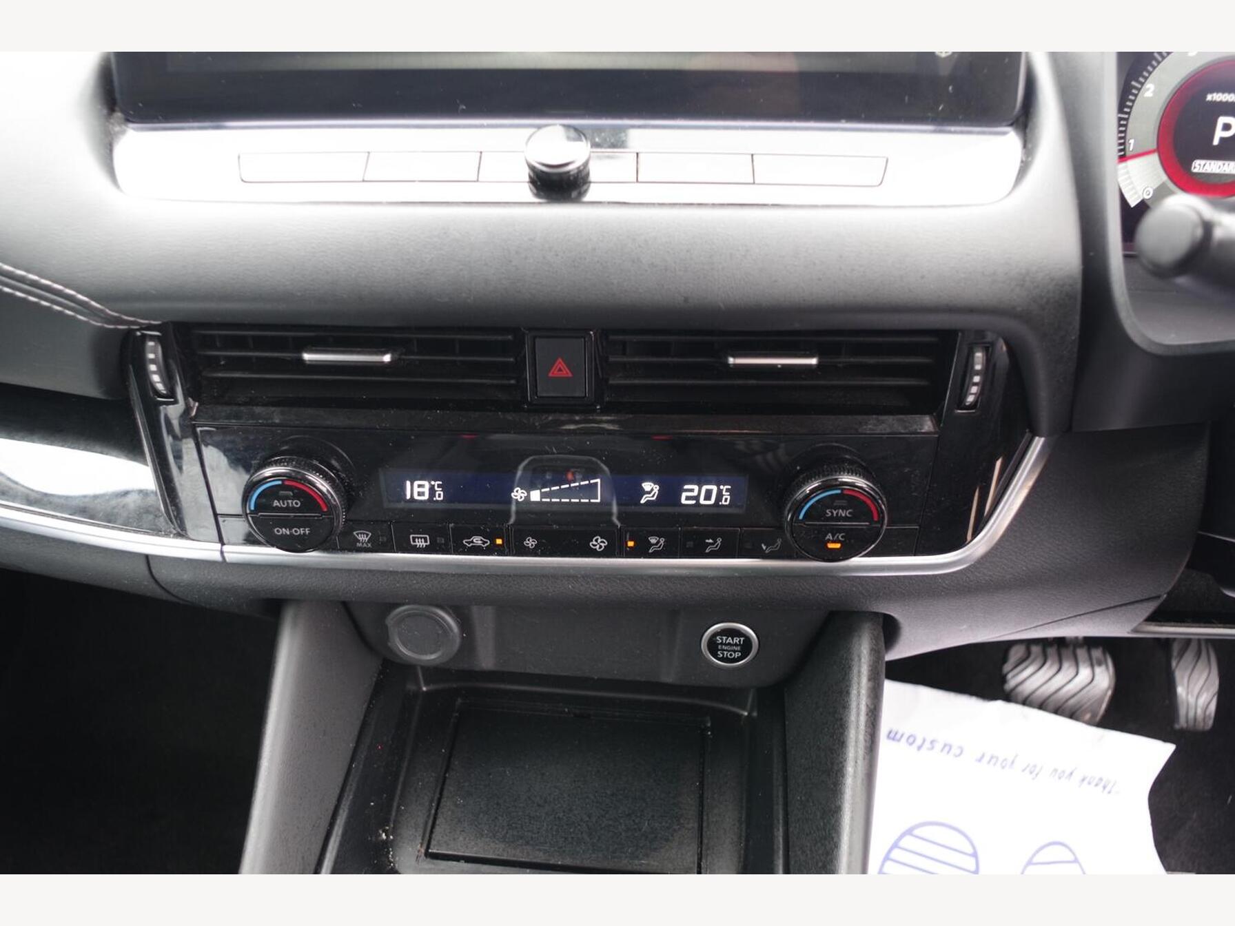 12v Power Sockets in Dash and Luggage Space, 18in Alloy Wheels - Diamond Cut, 3 Rear Headrests, 3 x 3-Point Rear Seatbelts, 4 Folding Assist Grip Plus 2 Coat Hooks Rear, 6 Luggage Hooks - 4 floor - 2 Side, 6 Speakers, 60-40 Split Rear Folding Seats, 7in High Definition Full Colour TFT Screen Combimeter, ABS with EBD and Brake Assist, AM-FM Audio System with DAB, Active Brake Limited Slip, Ambient Lighting Centre Console, Android Auto, Auto Dimming Rear View Mirror, Auto Hold Function, Auto Rear Wiper When Reversing, Automatic Dual Zone Climate Control with Pollen Filter, Blind Spot Warning, Bluetooth with Audio Streaming, Body Coloured Handles, Body Coloured Mirror Caps, Body Side Moulding, Capless Fuel Filler Cap, Chrome Interior Door Handles, Chrome Side Window Finisher, Curtain Airbags, Door Handle with Button, Door Mirror - Electrically Adjustable - Heated - Auto Folding with LED Turn Indicator, Drive Modes - Sport-Normal-Eco, Driver Seat Back Pockets, Driver and Passenger Airbags, Driver and Passenger Sun Visor with Illuminated Vanity Mirror, Driver-Passenger and Rear Seatbelt Reminder, Dusk Sensor, E-Call, Electric Adjustable Lumbar Support on Driver Seat, Electric Parking Brake, Electric Speed-Sensitive Power Steering, Emergency Stop Signal - Auto Hazard, Engine Immobiliser, Engine Start Button, FR - Front Reading and RR - Rear Reading and Luggage Room Lighting, Follow Me Home Headlights, Front Centre Console and Armrest, Front Cupholders x2, Front Door with Bottle Holders, Front Seat Belts with Load Limiter and Pretensioners, Front Seatbelt Height Adjustment, Front USB Connections - Type A and Type C, Front and Rear Parking Sensors, Glove Box with Light, Google Maps Services - Search - Weather - 3D Maps and Google Street View, Hard Trunk Cover, Headlights - High Beam Assist, Headlights - LED, Height Adjustable Driver Seat, Height Adjustable Front Headrests, Hill Start Assist, Intelligent Around View Monitor, Intelligent Auto Headlight, Intelligent Blind Spot Intervention, Intelligent Cruise Control, Intelligent Driver Alertness, Intelligent Forward Collision Warning, Intelligent Front Emergency Braking with Pedestrian Recognition and Cyclist Recognition and Junction Assist, Intelligent Key, Intelligent Lane Intervention, Intelligent Rear Automatic Braking, LED Daytime Running Lights, LED Rear Lights, Lane Departure Prevention, Lane Departure Warning, Leather Steering Wheel, Luggage Board System, Maximum Speed Limiter, Moving Object Detection, Multifunctional Steering Wheel, Nissan Connect 9in Touchscreen Infotainment System, NissanConnect Navigation, One Touch Front and Rear Electric Windows with Remote Opening-Closing, One Touch Windows x4, Partially Body Coloured Bumpers, Passenger Seat Back Pockets, Privacy Glass, Puncture Repair Kit, Rain Sensing Wipers, Rear Bumper with Silver Insert, Rear Cross Traffic Alert, Rear Door Child Locks, Rear Door with Bottle Holders, Rear Privacy Glass, Rear Reversing Light - Bulb, Rear Roof Spoiler, Rear Seat Armrest with 2 Cupholders, Rear Styling Plate, Rear USB Charging Only Ports - Type A and Type C, Rear View Camera, Remote Central Locking with Deadlocking, Remote Control Services - Door Locks - Lights - Horn and Car Locator, Seats - Passengers Height Adjustment, Shark Fin Antenna, Soft PVC Knee Pad, Splash Free Wipers, Steering Wheel Mounted Gearshift Paddles, Steering Wheel with Switches, Sunglasses Holder, Super UV and Infrared Cut Glass, TPMS - Tyre Pressure Monitoring System, Telematics - Notifications and Connectivity Services, Thatcham Alarm System, Three Blink Turn Signal, Tilt and Telescopic Adjustable Steering Wheel, TomTom Services Live Traffic, Traffic Sign Recognition, Trip Computer, Two Rear ISOFIX Child Seat Anchorage Point with Top Tether, VDC - Vehicle Dynamic Control, Virtual Personal Assistant and Firmware Over The Air Capability, Welcome Light and Console Tray Ambient Lighting, Wireless Apple CarPlay