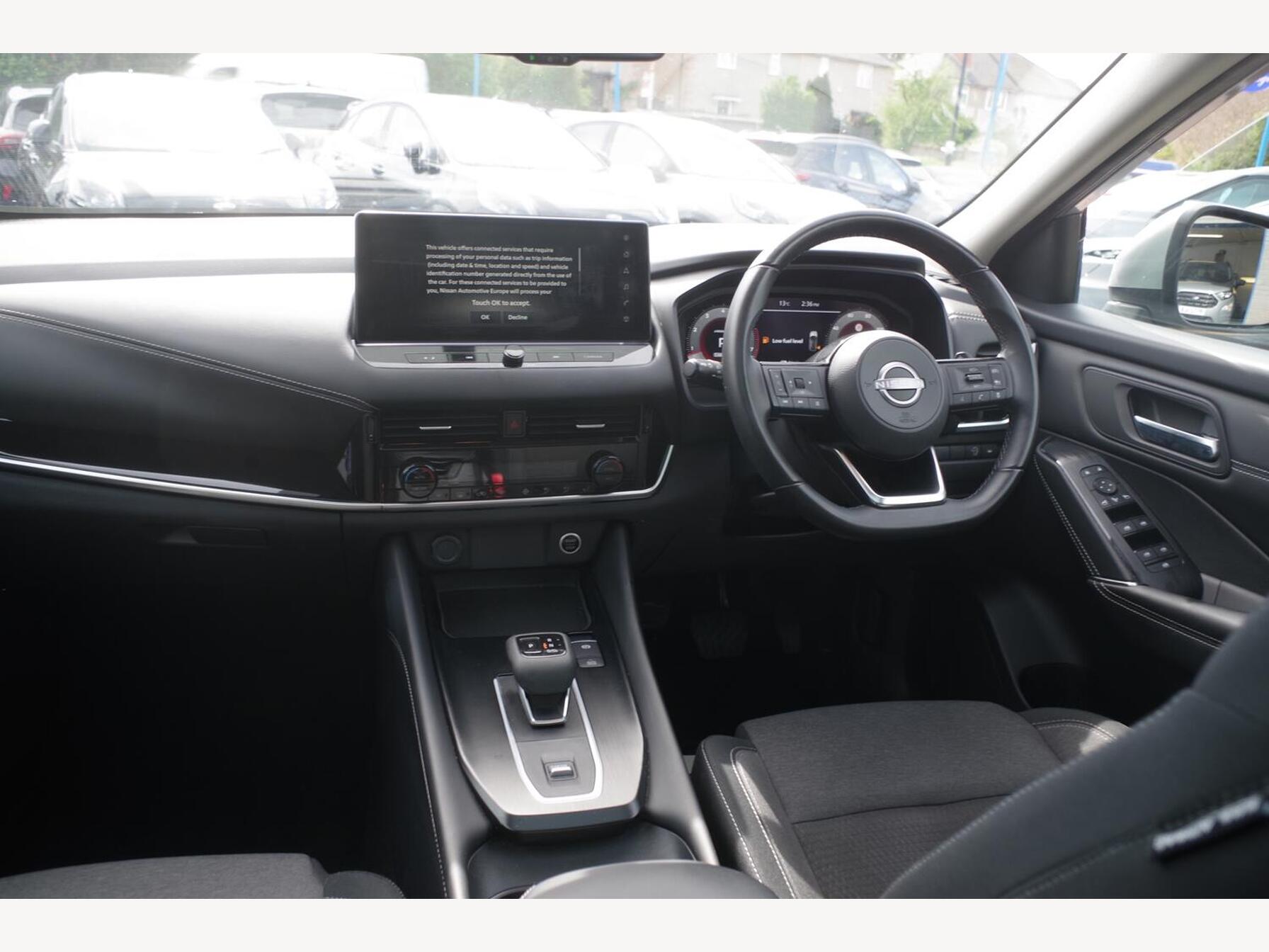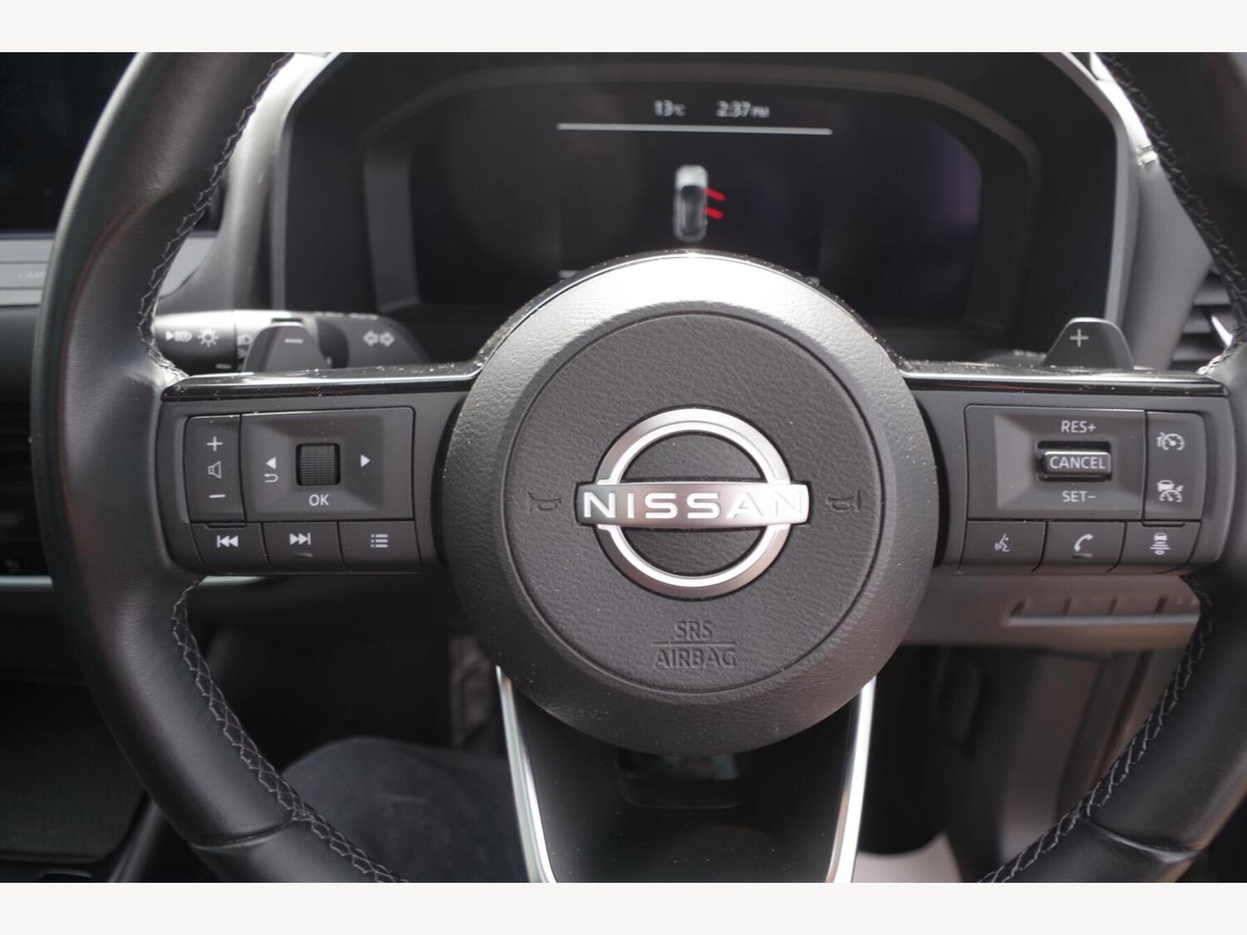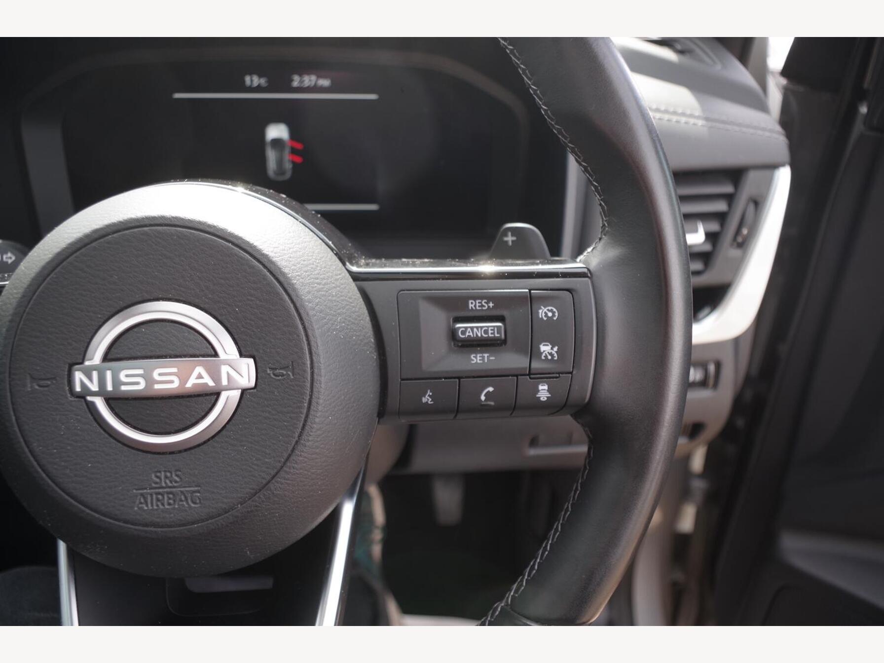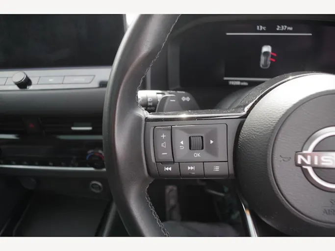 12v Power Sockets in Dash and Luggage Space, 18in Alloy Wheels - Diamond Cut, 3 Rear Headrests, 3 x 3-Point Rear Seatbelts, 4 Folding Assist Grip Plus 2 Coat Hooks Rear, 6 Luggage Hooks - 4 floor - 2 Side, 6 Speakers, 60-40 Split Rear Folding Seats, 7in High Definition Full Colour TFT Screen Combimeter, ABS with EBD and Brake Assist, AM-FM Audio System with DAB, Active Brake Limited Slip, Ambient Lighting Centre Console, Android Auto, Auto Dimming Rear View Mirror, Auto Hold Function, Auto Rear Wiper When Reversing, Automatic Dual Zone Climate Control with Pollen Filter, Blind Spot Warning, Bluetooth with Audio Streaming, Body Coloured Handles, Body Coloured Mirror Caps, Body Side Moulding, Capless Fuel Filler Cap, Chrome Interior Door Handles, Chrome Side Window Finisher, Curtain Airbags, Door Handle with Button, Door Mirror - Electrically Adjustable - Heated - Auto Folding with LED Turn Indicator, Drive Modes - Sport-Normal-Eco, Driver Seat Back Pockets, Driver and Passenger Airbags, Driver and Passenger Sun Visor with Illuminated Vanity Mirror, Driver-Passenger and Rear Seatbelt Reminder, Dusk Sensor, E-Call, Electric Adjustable Lumbar Support on Driver Seat, Electric Parking Brake, Electric Speed-Sensitive Power Steering, Emergency Stop Signal - Auto Hazard, Engine Immobiliser, Engine Start Button, FR - Front Reading and RR - Rear Reading and Luggage Room Lighting, Follow Me Home Headlights, Front Centre Console and Armrest, Front Cupholders x2, Front Door with Bottle Holders, Front Seat Belts with Load Limiter and Pretensioners, Front Seatbelt Height Adjustment, Front USB Connections - Type A and Type C, Front and Rear Parking Sensors, Glove Box with Light, Google Maps Services - Search - Weather - 3D Maps and Google Street View, Hard Trunk Cover, Headlights - High Beam Assist, Headlights - LED, Height Adjustable Driver Seat, Height Adjustable Front Headrests, Hill Start Assist, Intelligent Around View Monitor, Intelligent Auto Headlight, Intelligent Blind Spot Intervention, Intelligent Cruise Control, Intelligent Driver Alertness, Intelligent Forward Collision Warning, Intelligent Front Emergency Braking with Pedestrian Recognition and Cyclist Recognition and Junction Assist, Intelligent Key, Intelligent Lane Intervention, Intelligent Rear Automatic Braking, LED Daytime Running Lights, LED Rear Lights, Lane Departure Prevention, Lane Departure Warning, Leather Steering Wheel, Luggage Board System, Maximum Speed Limiter, Moving Object Detection, Multifunctional Steering Wheel, Nissan Connect 9in Touchscreen Infotainment System, NissanConnect Navigation, One Touch Front and Rear Electric Windows with Remote Opening-Closing, One Touch Windows x4, Partially Body Coloured Bumpers, Passenger Seat Back Pockets, Privacy Glass, Puncture Repair Kit, Rain Sensing Wipers, Rear Bumper with Silver Insert, Rear Cross Traffic Alert, Rear Door Child Locks, Rear Door with Bottle Holders, Rear Privacy Glass, Rear Reversing Light - Bulb, Rear Roof Spoiler, Rear Seat Armrest with 2 Cupholders, Rear Styling Plate, Rear USB Charging Only Ports - Type A and Type C, Rear View Camera, Remote Central Locking with Deadlocking, Remote Control Services - Door Locks - Lights - Horn and Car Locator, Seats - Passengers Height Adjustment, Shark Fin Antenna, Soft PVC Knee Pad, Splash Free Wipers, Steering Wheel Mounted Gearshift Paddles, Steering Wheel with Switches, Sunglasses Holder, Super UV and Infrared Cut Glass, TPMS - Tyre Pressure Monitoring System, Telematics - Notifications and Connectivity Services, Thatcham Alarm System, Three Blink Turn Signal, Tilt and Telescopic Adjustable Steering Wheel, TomTom Services Live Traffic, Traffic Sign Recognition, Trip Computer, Two Rear ISOFIX Child Seat Anchorage Point with Top Tether, VDC - Vehicle Dynamic Control, Virtual Personal Assistant and Firmware Over The Air Capability, Welcome Light and Console Tray Ambient Lighting, Wireless Apple CarPlay