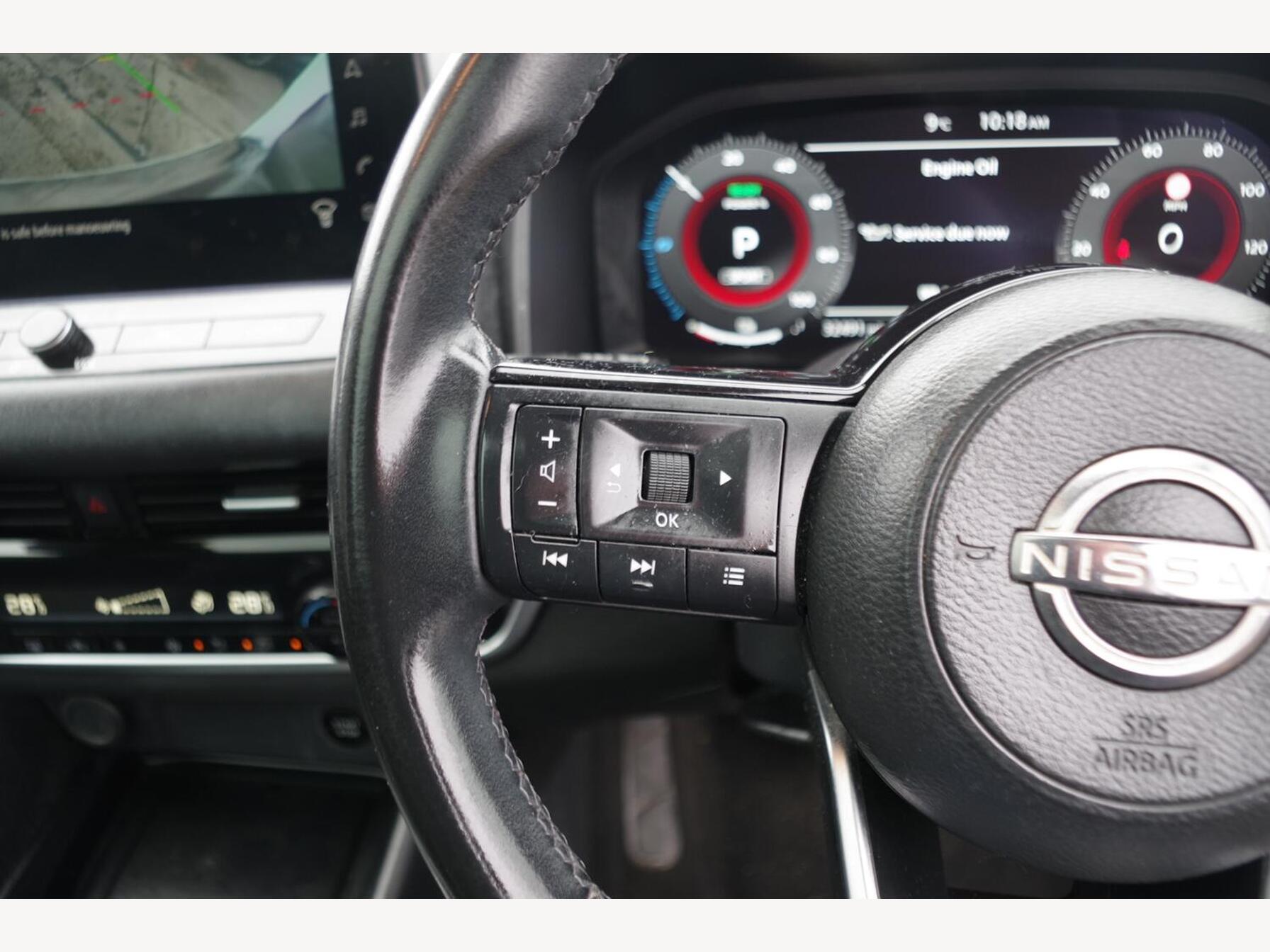 12v Power Sockets in Dash and Luggage Space, 18in Alloy Wheels - Diamond Cut, 3 Rear Headrests, 3 x 3-Point Rear Seatbelts, 6 Speakers, 60-40 Split Rear Folding Seats, ABS with EBD and Brake Assist, AM-FM Audio System with DAB, Active Brake Limited Slip, Auto Dimming Rear View Mirror, Auto Hold Function, Auto Rear Wiper When Reversing, Automatic Dual Zone Climate Control with Pollen Filter, Blind Spot Warning, Bluetooth with Audio Streaming, Body Coloured Handles, Body Coloured Mirror Caps, Body Side Moulding, Chrome Interior Door Handles, Chrome Side Window Finisher, Curtain Airbags, Door Mirror - Electrically Adjustable - Heated - Auto Folding with LED Turn Indicator, Drive Modes - Sport-Normal-Eco, Driver Seat Back Pockets, Driver and Passenger Airbags, Driver and Passenger Sun Visor with Illuminated Vanity Mirror, Driver-Passenger and Rear Seatbelt Reminder, E-Pedal STEP, Electric Parking Brake, Electric Speed-Sensitive Power Steering, Emergency and Breakdown Call, Engine Immobiliser, Engine Start Button, Follow Me Home Headlights, Front Centre Console and Armrest, Front Cupholders x2, Front Door with Bottle Holders, Front Parking Sensors, Front Seat Belts with Load Limiter and Pretensioners, Front Seatbelt Height Adjustment, Front USB Connections - Type A and Type C, Full Digital 12.3in TFT Digital Combimeter, Google Maps Services - Search - Weather - 3D Maps and Google Street View, Headlights - High Beam Assist, Headlights - LED, Height Adjustable Driver Seat, Height Adjustable Front Headrests, Hill Start Assist, Intelligent Around View Monitor, Intelligent Auto Headlight, Intelligent Blind Spot Intervention, Intelligent Cruise Control, Intelligent Driver Alertness, Intelligent Forward Collision Warning, Intelligent Front Emergency Braking with Pedestrian Recognition and Cyclist Recognition and Junction Assist, Intelligent Key, Intelligent Lane Intervention, Intelligent Rear Automatic Braking, LED Daytime Running Lights, LED Rear Lights, Lane Departure Prevention, Lane Departure Warning, Luggage Board System, Luggage Space Lighting, Maximum Speed Limiter, Moving Object Detection, Multifunctional Steering Wheel, Nissan Connect 12.3in Touchscreen Infotainment System, NissanConnect Navigation, One Touch Front and Rear Electric Windows with Remote Opening-Closing, Partially Body Coloured Bumpers, Passenger Seat Back Pockets, Privacy Glass, Puncture Repair Kit, Rain Sensing Wipers, Rear Cross Traffic Alert, Rear Door Child Locks, Rear Door with Bottle Holders, Rear Parking Sensors, Rear Reversing Light - Bulb, Rear Roof Spoiler, Rear Seat Armrest with 2 Cupholders, Rear Styling Plate, Rear USB Charging Only Ports - Type A and Type C, Rear View Camera, Remote Central Locking with Deadlocking, Remote Control Services - Door Locks - Lights - Horn and Car Locator, Seats - Passengers Height Adjustment, Shark Fin Antenna, Splash Free Wipers, Super UV and Infrared Cut Glass, Synthetic Leather Steering Wheel., TPMS - Tyre Pressure Monitoring System, Telematics - Notifications and Connectivity Services, Thatcham Alarm System, Three Blink Turn Signal, Tilt and Telescopic Adjustable Steering Wheel, TomTom Services Live Traffic, Traffic Sign Recognition, Trip Computer, Two Rear ISOFIX Child Seat Anchorage Point with Top Tether, VDC - Vehicle Dynamic Control, Virtual Personal Assistant and Firmware Over The Air Capability, Welcome Light and Console Tray Ambient Lighting, Wired Android Auto, Wireless Apple CarPlay, e-POWER Badging, e-POWER Shifter
