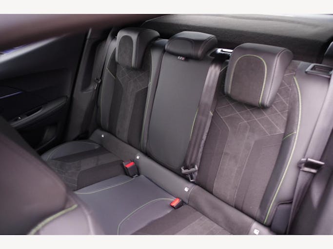 1-3 - 2-3 Folding Rear Seat, 12V Power Socket, 18in Alloy Wheels - Bund - Diamond Cut - Storm Grey, 6-Speaker Radio - MP3 Compatible, 8-Colour Customisable Ambient Lighting, ABS with Electronic Brake Force Distributor EBD and Emergency Brake Assist EBA, Active Safety Brake - Night Function - Cyclists - Pedestrians, Alarm with Anti-Lift Sensor, Aluminium Pedals, Automatic Air Conditioning with Pollen Filter and Carbon Active Filter, Automatic Door Locking When Moving Off, Automatic Front Windscreen Wipers, Automatic Hazard Light Activation Upon Heavy Brake Application, Blind Spot Monitoring System, Bluetooth Telephone Facility, Child Locking Functionality on Rear Doors, DAB Digital Radio, Dark Tinted Rear Side and Tailgate Windows, Dashboard - Front and Rear Door Panel Finish - Carbon Effect, Deadlocking, Door Mirror Shells - Diamond Black, Drive Assist Pack Plus - Adaptive Cruise Control with Stop-Go-Lane Positioning Assist, Driver Attention Alert, Driver and Front Passenger Seat Mechanical Height Adjustment, Driver and Front Passenger Side Airbags, Driver and Front Passenger Sport Seats, Driver and Passenger Airbag with Passenger Airbag Deactivation Switch, ESP - Electronic Stability Program - with Hill Assist, Electric - Heated and Power Folding Door Mirrors with Floor Lighting, Electric Parking Brake, Electric Power Steering with Reach and Rake Adjustable Steering Column, Electric Windows - Front and Rear with One Touch, Electronic Code Immobiliser, Exhaust Pipe - Twin Chrome Surrounds, Exterior Door Handles - Body-Colour, Exterior Temperature Indicator with Ice Warning, Frameless Electrochrome Rear View Mirror, Front Central Armrest with Storage Compartment, Front Optimised Safety Headrests and Rear Retractable Headrests - x3 - Height-Adjustable, Front USB Socket x2 including x1 USB-C, Front Wing Trim - Black with Gloss Black Detail and GT Badging, Front and Rear 3 Point Retractable Seatbelts - With Force Limiter, Front and Rear Carpet Mats in Black with Lime Green Stitch Detail, Front and Rear Curtain Airbags, Front and Rear Parking Sensors, Full LED Headlights with Smartbeam Assist, GT Model Designation Badging on Tailgate, Gloss Black B Pillar, Gloss Black Rear Cluster Connecting Strip, Gloss Black Window Surround, Headlights Left On Audible Warning, High Centre Console, ISOFIX Child Seat Fittings - x2 in the Outer Rear Seat, ISOFIX Location Points - Front Passenger, LED Daytime Running Lights - 3-Claw Headlight with Distinctive Tooth Design, LED Front Fog Lights with Remote Cornering Function, LED Front Interior Light with Reading Spotlights -x2- and Rear Interior Light with Timer, LED Side Indicator Lights Integrated into Door Mirrors, Lane Keeping Assist, Lime Green Contrast Stitching to Front Centre Console - Door Panels - Dashboard Facia, Longitudinal Roof Bars - Gloss Black, Lower Door Protection with Silver Inserts, Lower Front Bumper - SIlver, Map Pockets on Front Seat Backs, Mirror Screen - Apple CarPlay - Android Auto and MirrorLink, Mistral Full-Grain Perforated Leather Steering Wheel with Lime Green Stitch Detail and Satin Chrome GT Emblem, Model Designation Badges - Front and Rear, Modular Boot Floor - 2 Position, Multifunction Trip Computer, Nera Black - Roof, PEUGEOT 3D i-Cockpit - Configurable 3D Head-Up Instrument Panel, PEUGEOT Open and Go System, PEUGEOT i-Cockpit 10in Capacitive Colour Touchscreen with Connected 3D Navigation, Peugeot Connect SOS and Assistance, Peugeot i-Cockpit - Compact Multi-Function Steering Wheel, Piano Keys - Gloss Black and Chrome Plated Toggle Switches to Access Main Functions of Vehicle and Touchscreen Functions, Programmable Cruise Control and Speed Limiter, Radiator Grille - Dark Chrome Chequered and Gloss Black Edge Trim, Radiator Grille - Gloss Black Higher Part, Rear Full LED 3D Peugeot Signature Claw Effect Lights with Daylight Function, Rear Number Plate Lights x2, Rear Reversing Lights, Rear Spoiler - Diamond Black, Rear USB Socket x2, Rear Windscreen Wiper Triggered Automatically in Reverse Gear, Roof Lining - Mistral Black, Seatbelt Unfastened on the Move Audible and Visual Alert for Front and Rear Seats, Seating - Driver and Front Passenger Seat Manual Adjustment - Longitudinal and Back Rest Angle, Smartphone Charging Plate, Smartphone Docking Station, Speed Limit Recognition and Recommendation, Stainless Steel Door Sill Scuff Plates, Tailgate with Heated Rear Windscreen and Wiper Blade, Tyre Inflation Kit, Tyre Pressure Sensors, Visibility Pack, Visio Park 1 - 180 Degree Colour Reversing Camera, Voice Recognition - Radio-Navigation-Telephony Features, Wheel Arch Extensions