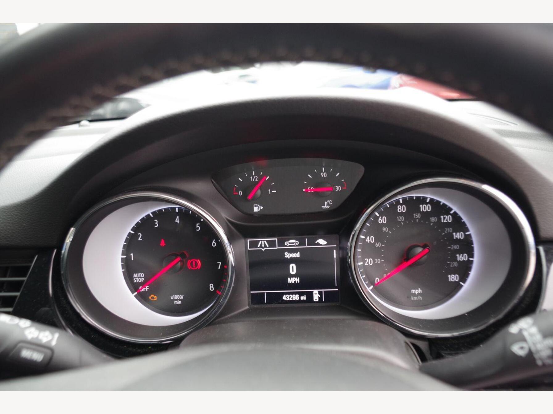 12V Electrical Accessory Socket, 17in Alloy Wheels - Five Twin Spoke, 60-40 Split-Folding Rear Seat Back, ABS - Anti-Lock Braking System, Adaptive Brake Lights, Air Conditioning, Airbag - Drivers, Ambient Lighting - LED Facia-Centre Console Downlighter, Anti-Submarining Ramps in All Seats, Automatic Lighting Control with Tunnel Detection, Automatically Dimming Anti-Dazzle Rear-View Mirror, Black Door Panels with Black Atlantis Cloth Inserts, Black Facia with Piano Black Trim Inserts, Body-Colour Door Handles, Body-Coloured Rear Roof Spoiler, Bonnet - Headlight - Wiper Structure, Burst-Proof Door Locks and Anti-Jam Door Design, Central Facia Display, Central Front Courtesy Light, Central Rear Courtesy Light, Child Proof Locks on Rear Doors, Chrome Effect Headlight Detail, Chrome Effect Interior Door Handles, Chrome Effect Upper Window Trim, Chrome-Effect Front Grille Bar, Cruise Control with Speed Limiter, Deactivation Switch for Front Passengers Airbag, Deformation Zones Front and Rear, Digital Fuel Gauge with Low Fuel Level Warning Light, Digital Water Temperature Gauge with Warning Light, Door Mirrors - Body Colour, Door-to-Door Illumination, Driver Information Display, Drivers and Front Passengers Illuminated Vanity Mirrors with Flip-Up Cover, Drivers and Front Passengers Sunvisors, Driving Assistance Pack One, EBD - Electronic Brakeforce Distribution, ESP - Electronic Stability Programme, Electrically Operated Front and Rear Windows with Safety Autoreverse and One-Touch Facility, Electronically Protected Audio Equipment, Emergency Brake Assist, Energy Absorbing Steering Column, Engine Deadlock Immobiliser, Fade Up-Fade Down Courtesy Lights, Fading Brake Support, Fold Out Storage Box On Drivers Side Lower Facia, Four Adjustable Facia Vents, Four Load Restraint Lashing Eyes, Freewheeling Door Locks, Front Centre Armrest with Storage, Front Door Pockets, Front Fog Lights, Front Passenger Airbag, Front Passenger Vanity Mirror, Front and Outer Rear Seatbelt Force Limiters, Front and Outer Rear Seatbelt Pretensioner System, Front and Rear Seatbelt Unfastened Audible Warning and Warning Light, Full Size Curtain Airbags for Driver - Front Passenger and Outer Rear Seat Passengers, Fully Carpeted Load Area, Gloss Black B-Pillars, Gloss Black C-Pillars, Glovebox with Lid, Halogen Headlights, Hazard Warning Lights, Headlining - Titanium, Heated Rear Screen with Automatic Timed Cut-off, Height Adjustable Front Inertia-Reel Lap and Diagonal Seatbelts, Height-Adjustable Front Seat Head Restraints, High-Level LED Centre Rear Brake Light, Hill Start Assist, ISOFIX Child Seat Mountings Incorporating Top Tether Anchor Points Located on Outer Rear Seats, Illuminated Load Area, Instrument Panel Bar - Piano Black, Interior Tailgate Handle, Intermittent Rear Window Wash-Wipe, Key Left in Ignition Audible Warning, LED Daytime Running Lights, LED Side Repeat Indicators, Laminated Windscreen, Lights On Audible Warning, Locking Wheel Bolts for Alloy Wheels, Luggage Compartment Cover, Manual Headlight Beam Levelling, Manually Foldable Door Mirrors, Multi-Function Trip Computer, Pedal Release System, Piano Black Trim Inserts on Front Doors, R4.0 IntelliLink Touch-Screen Infotainment System, Rain Sensitive Windscreen Wipers, Rear Door Pockets, Rear Fog Light, Reinforced Passenger Safety Cell, Remote Control Central Locking, Remote Control Ultrasonic Security Alarm System, Rev Counter, Reversing Lights, Shift - Up-Down Indication Light, Side Impact Protection Beams, Side Window Demist Vents, Silver Air Vent Surrounds, Six Speakers - Four Front-Two Rear, Solar Heat Absorbing Windscreen, Speed-Sensitive Electric Power-Assisted Steering, Speedometer, Sport Switch, Sports-Style Front Seats, Steering Column - Adjustable for Reach and Rake, Steering Wheel - Mounted Audio Controls, Steering Wheel - Three-Spoke Design - Leather Covered with Accent Stitching - Satin Chrome-Effect Bezel, Storage Pockets on Front Seat Backs, TPMS - Tyre Pressure Monitoring System, Three Height Adjustable Rear Seat Head Restraints, Three Inertia-Reel Lap and Diagonal Rear Seatbelts, Three Person Layout, Tinted Windows, Twin Electrically Adjustable - Heated Door Mirrors, Twin Front Reading Lights with Illuminated Switches, Twin Gas Assisted Tailgate Struts, Twin Rear Reading Lights with Illuminated Switches, Two Drinks Holders in Front Centre Console, Two Front Seat Side-Impact Airbags, Two Speed Windscreen Wipers with Variable Intermittent Wipe, Upper and Lower Bumper Design, VIN - Visible Vehicle Identification Number, Vauxhall OnStar, Windscreen Demist Vents